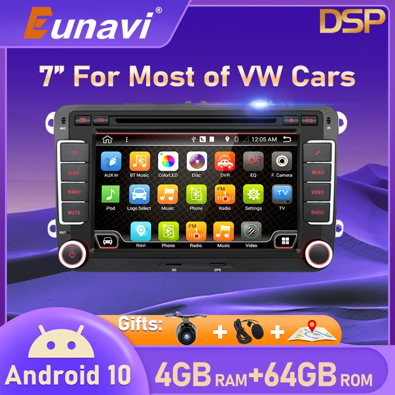 Автомагнитола Eunavi, мультимедийный DVD-проигрыватель на Android 10, с GPS, для VW Golf 56, Polo, Bora, Jetta, Passat b6, b7, Tiguan, Touran, Sharan, типоразмер 2 Din