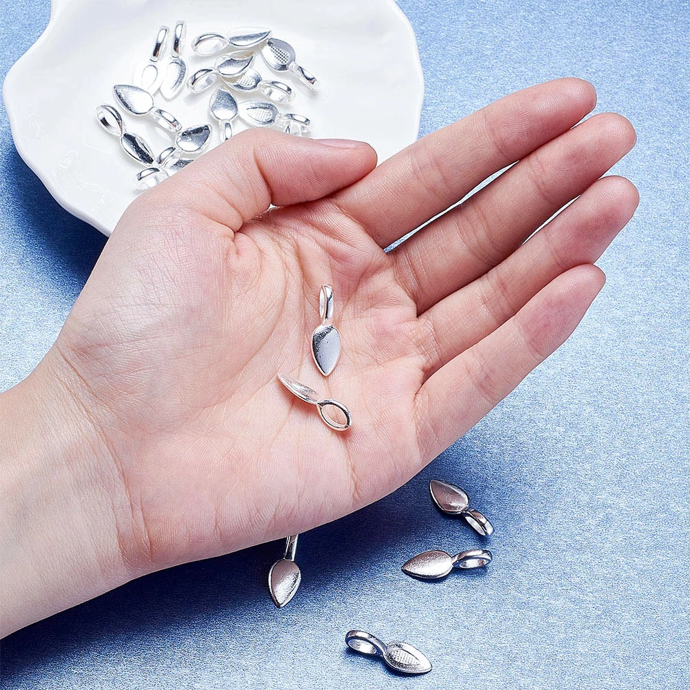 50 шт.лот 21x8x6 мм античный серебряный декоративный лист из сплава Клей плоская подкладка отверстие: 4x6 мм для DIY подвесок ювелирных изделий