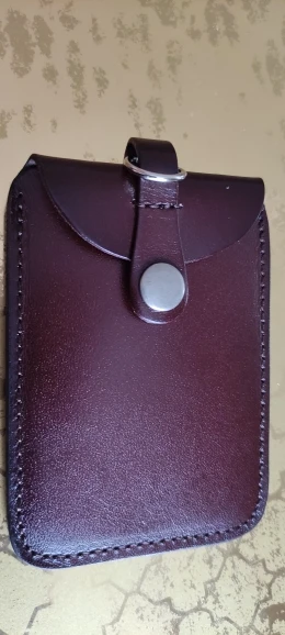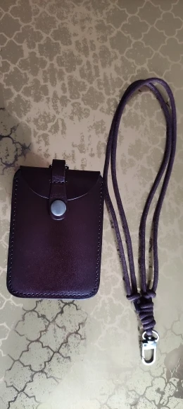 Чехол для бейджа из натуральной кожи, с выдвижным ремешком