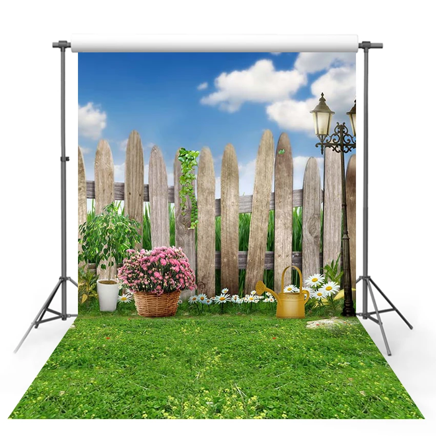 Фон для фотосъемки с изображением голубого неба белых облаков деревянного забора фон для фотосъемки новорожденных в студии