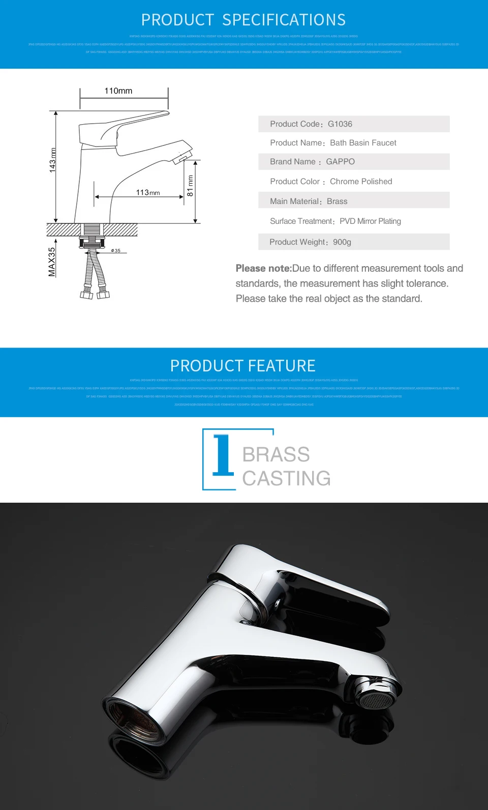 Смеситель для воды GAPPO G1036, кран для раковины в ванной хромированный латунный кран, одно отверстие
