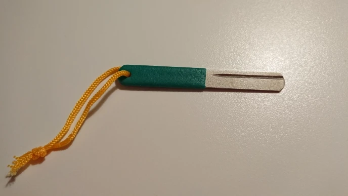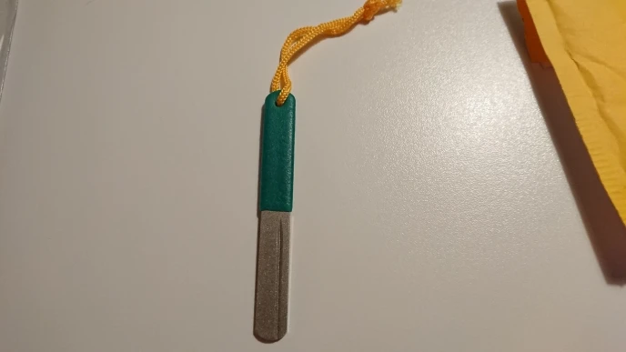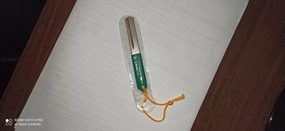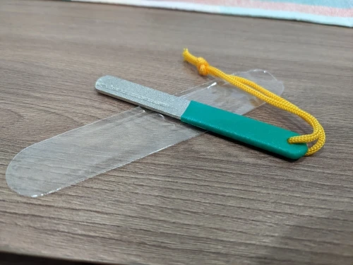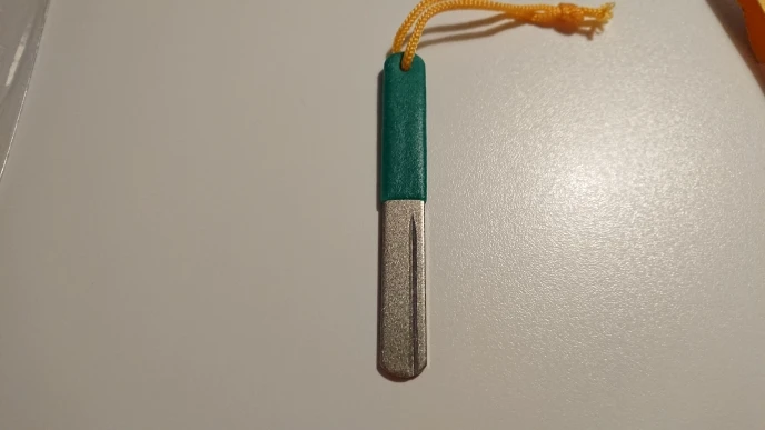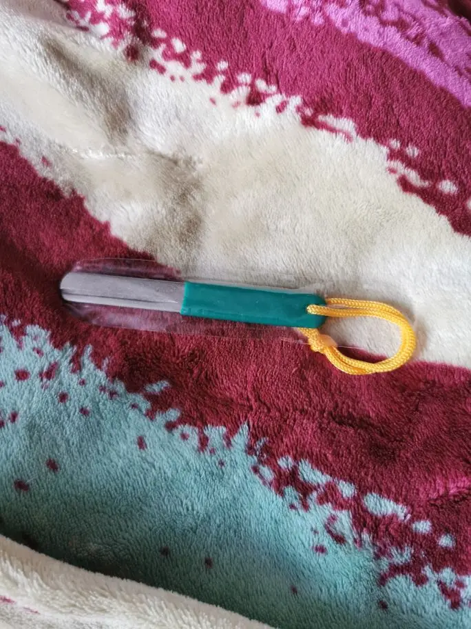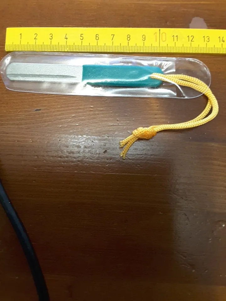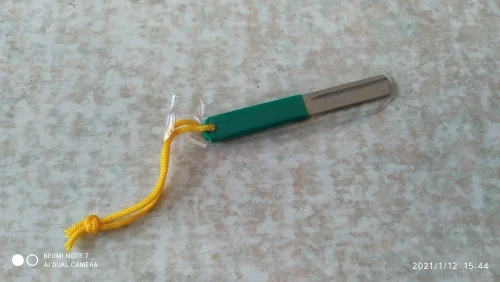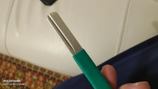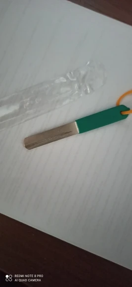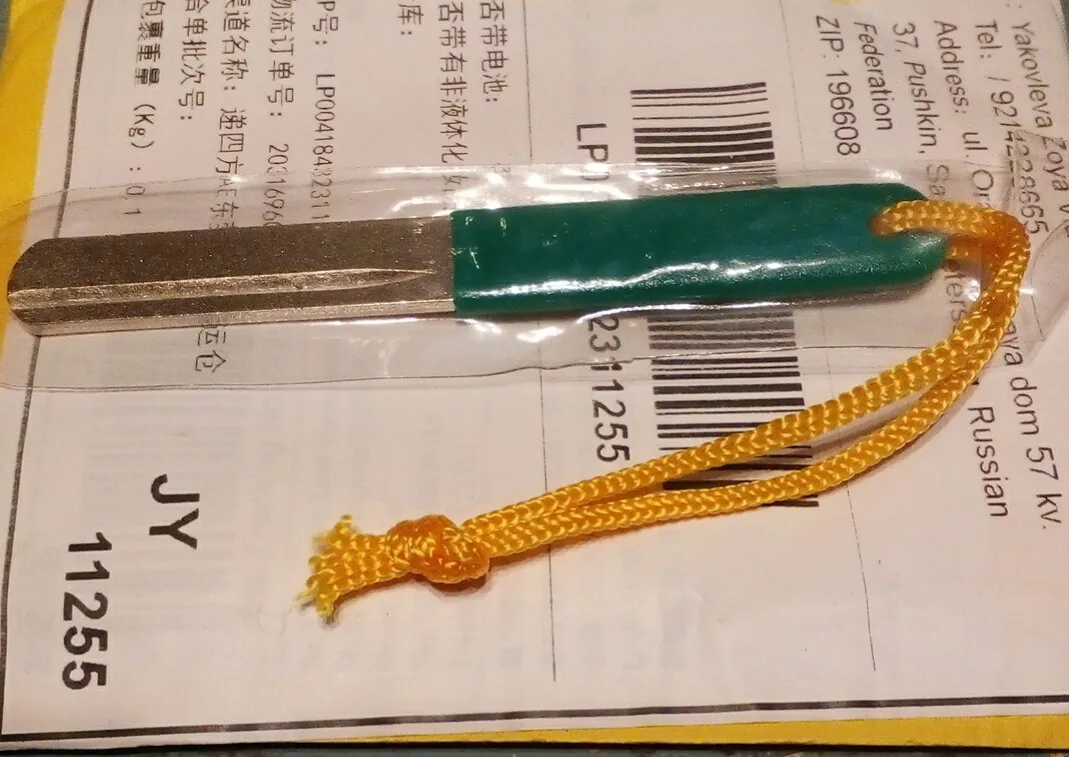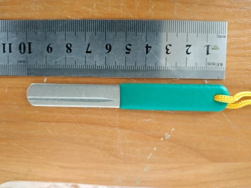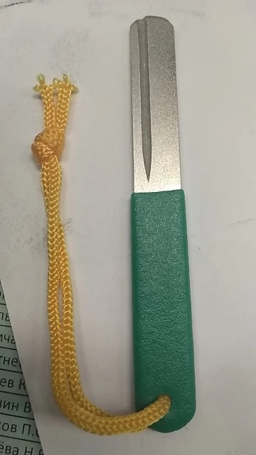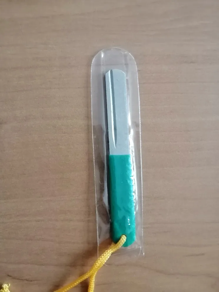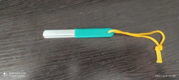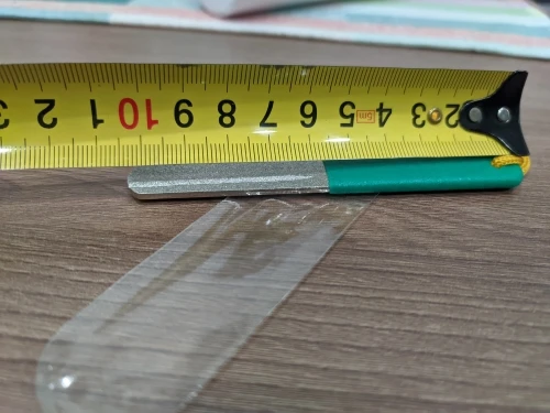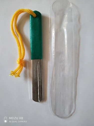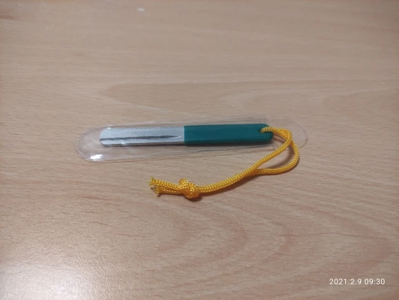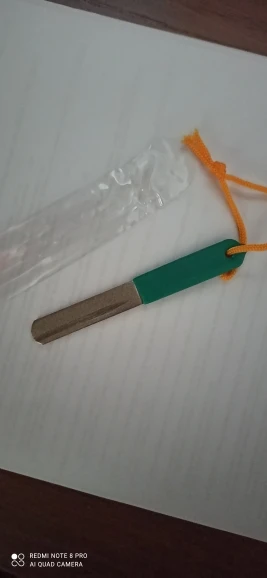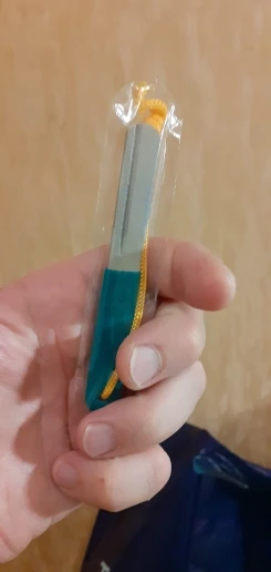 Быстрая доставка, в составе сборной посылки, меньше месяца до Дагестана. Практически, оптимальные размеры: 100*12*3мм. Не скользящая ручка. Качественная рабочая часть. Прозрачный, достаточно прочный чехольчик. Единственное маленькое замечание - ручка зеленного цвета. Хотелось бы красную. Но, это уже хитрость производителя. Однозначно 5 ⭐ за всё. Рекомендую. Продавцу - уважуха!