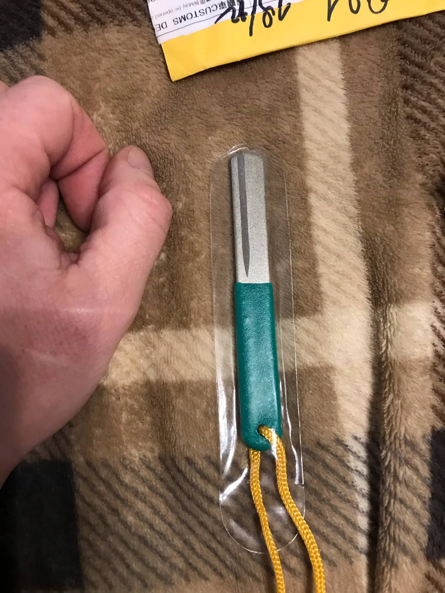 получил быстро ,пробовал точить крючки ,пришедшие вместе из Китая ,точит хорошо ,алмаз зернистость с двух сторон разная ,это хорошо .Продавцу спасибо,рекомендую.