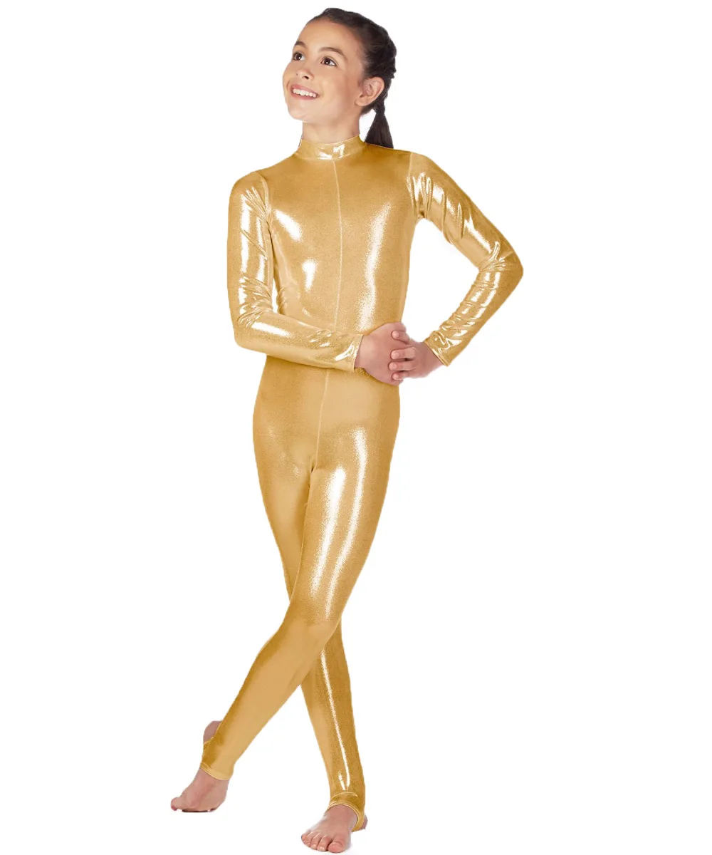 LZCMsoftблестящие комбинезоны с длинными рукавами для девочек цвета металлик, с воротником-хомутом, для танцев, базовый Детский костюм для выступлений на сцене