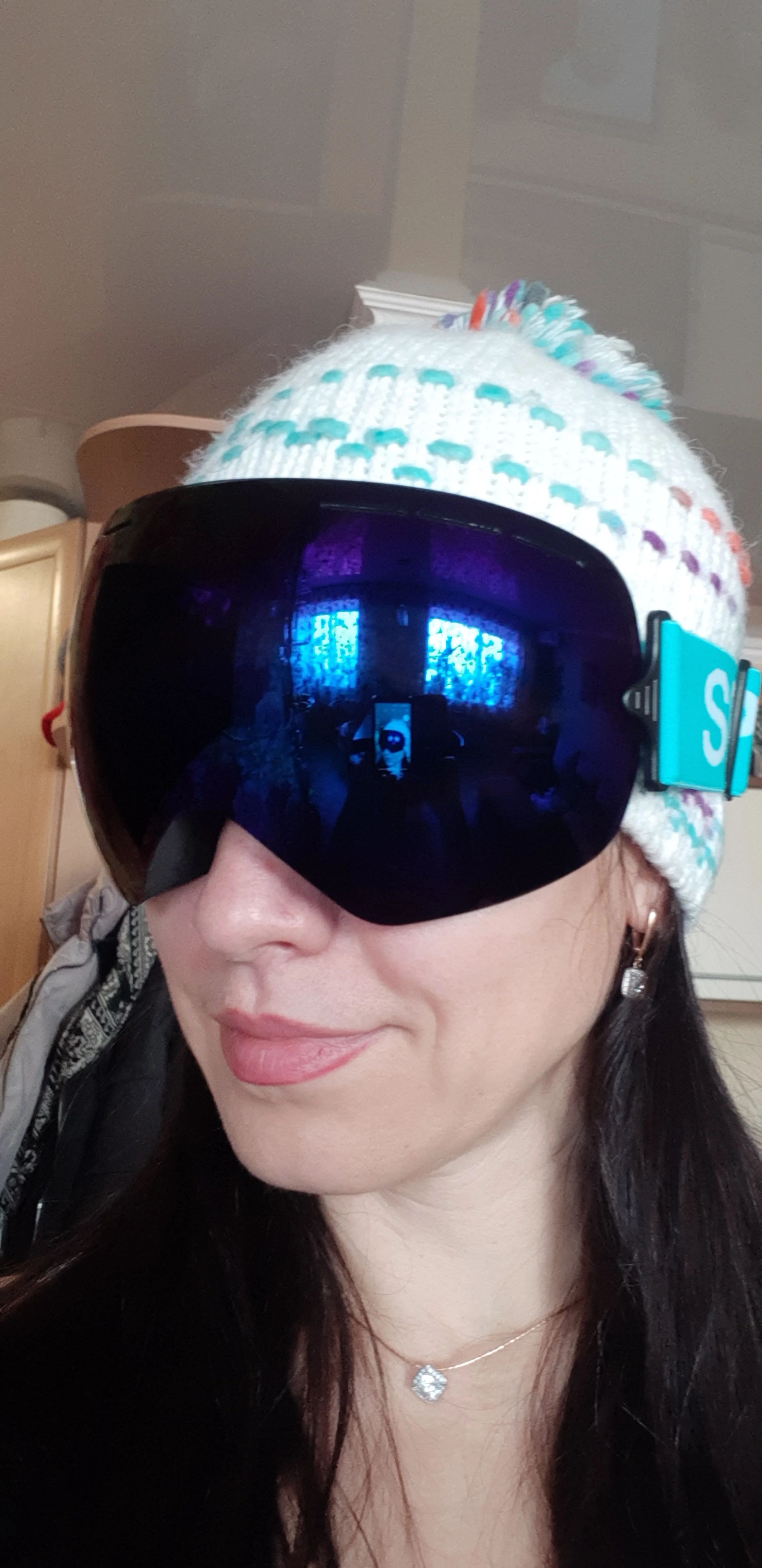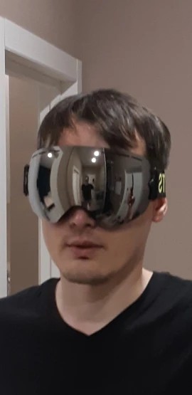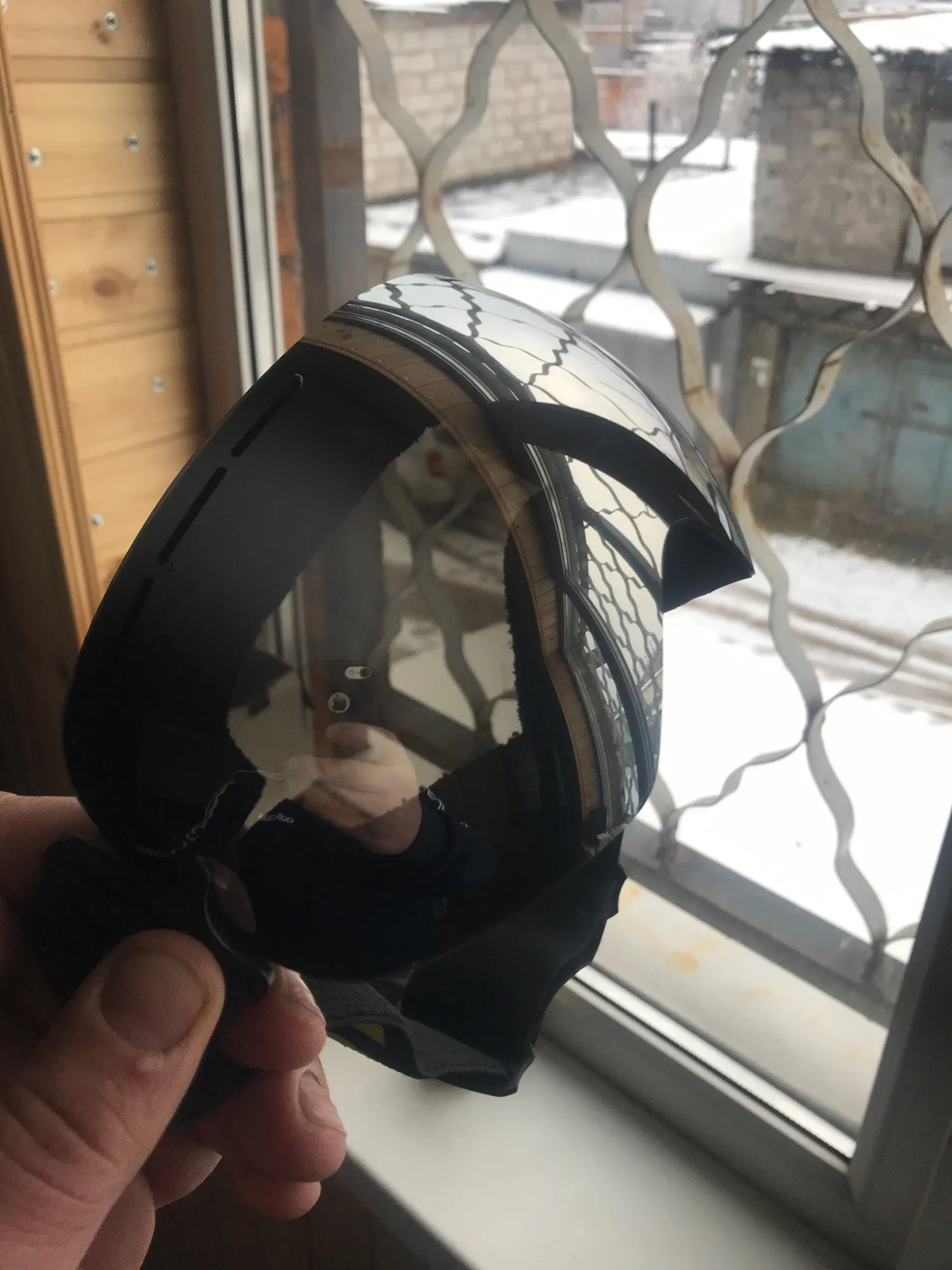 Очки для тёплого времени на морозе сразу отпотели и замёрзли протирать в нутри не удобно короче надел зделал селфи и выкину