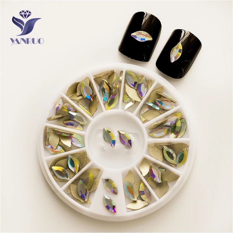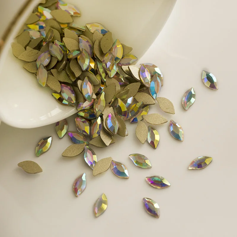 Стразы YANRUO 2566NoHF AB Fish 4x8 мм с плоским основанием, 3D, для дизайна ногтей, без горячей фиксации