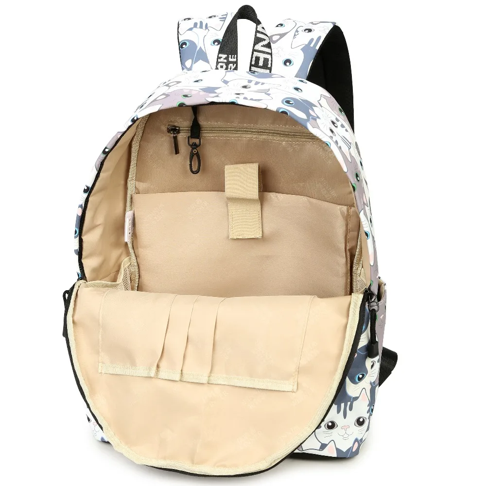 Водонепроницаемый рюкзак с принтом кошки, Женский Школьный рюкзак, женский милый рюкзак для ноутбука 14-15,6 дюймов, сумка для книг для девочек