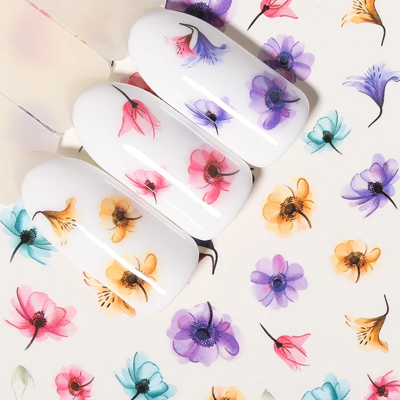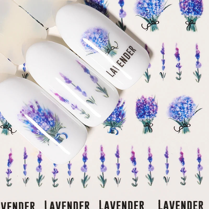 Водные Наклейки для ногтей, 1 лист, Цветочная серия, Маргаритка, лаванда, наклейка для ногтей, Серия животных, океан, кошка, растение, переводные наклейки