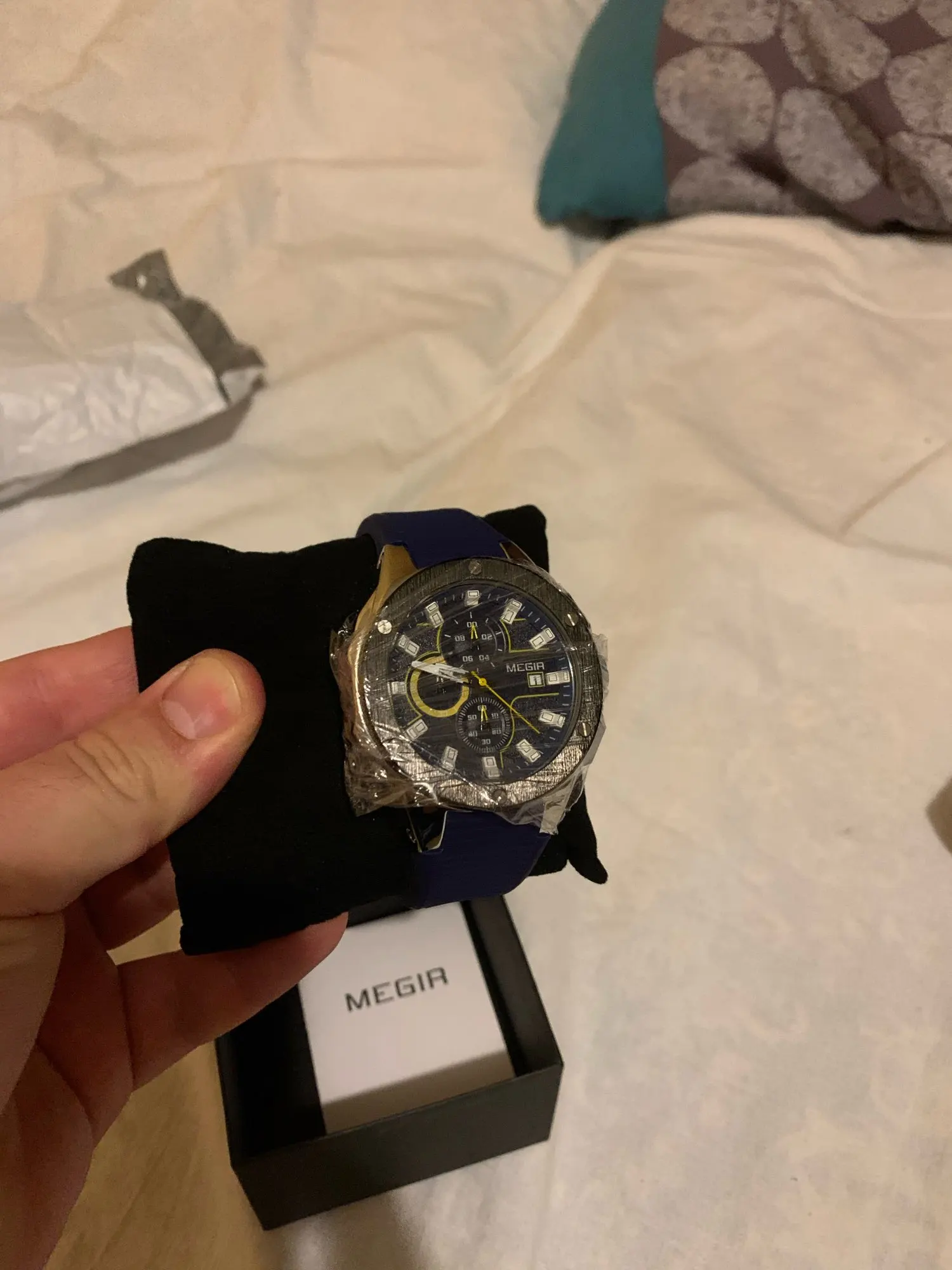 Досить непоганий годинник за вказаною ціною. Важкий, великий. Упакування цілісне. При відкритті годинник вже працював, ремінь селіконовий на перший погляд надійний при експлуатації далі покаже. Продавцю респект за швидку відправку!