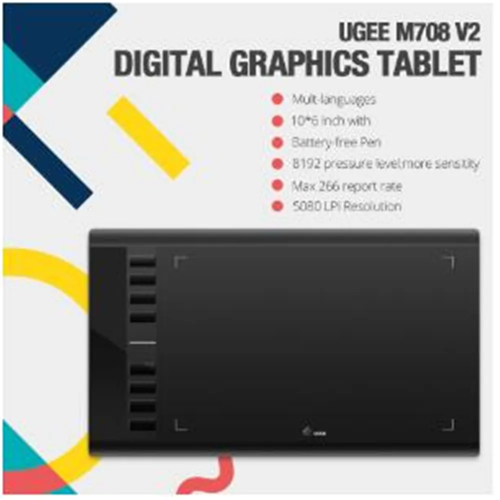 Ugee M708 V2 цифровые планшеты графический планшет для рисования "10x6" дюймов 8192 уровень графический планшет с ручкой без батареи