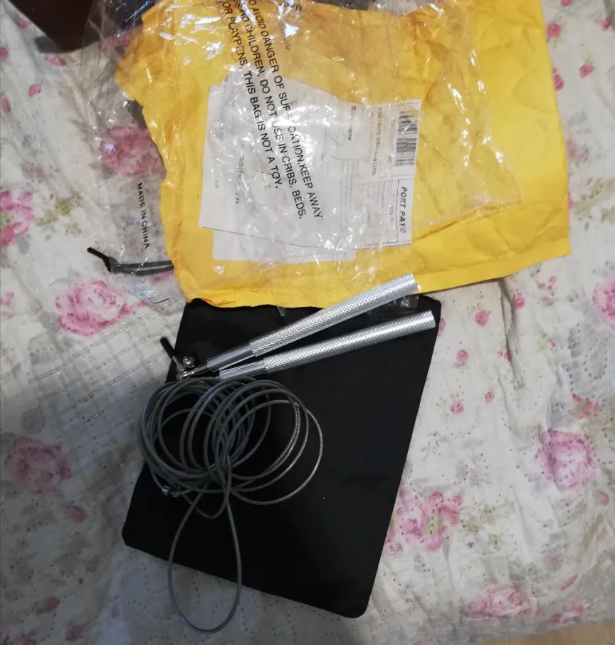 Скакалка хорошая, быстрая доставка. Чехол для скакалки так себе, не очень качественный.