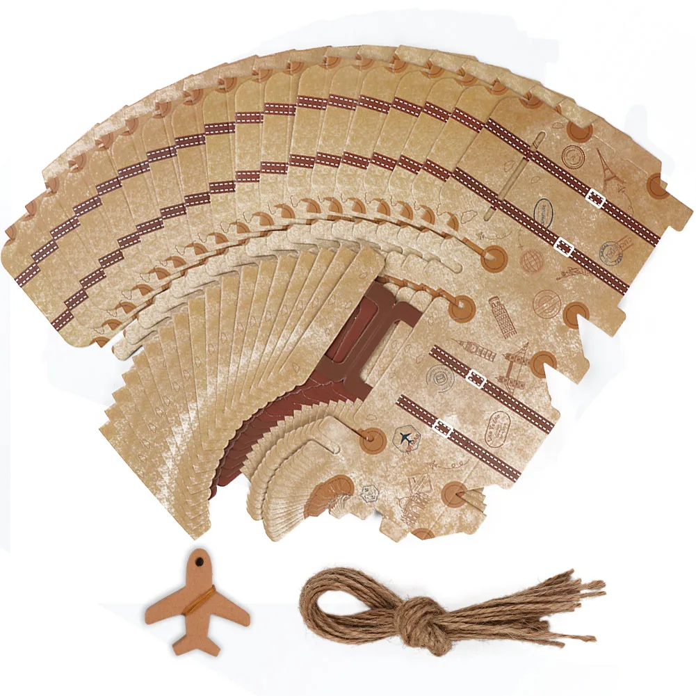 10 шт/20 шт коробки для конфет 10 шт/20 шт шпагат из мешковины 10 шт/20 шт в форме самолета крафт-бумаги тег Размер: 3,1 дюйма (д) x1.2 дюйма (ш) X 2 дюйма (в)/8 см X3cmx5cm Материал: картон Вес: 64g Применение: Костюм для садовой тематики, классической тематики, тематической вечеринки для путешествий на свадьбу, день рождения, юбилей, детский душ и т. Д. Примечание: коробки для конфет поставляются на плоской подошве и легко монтируются