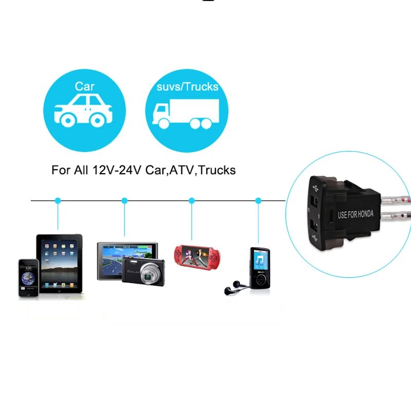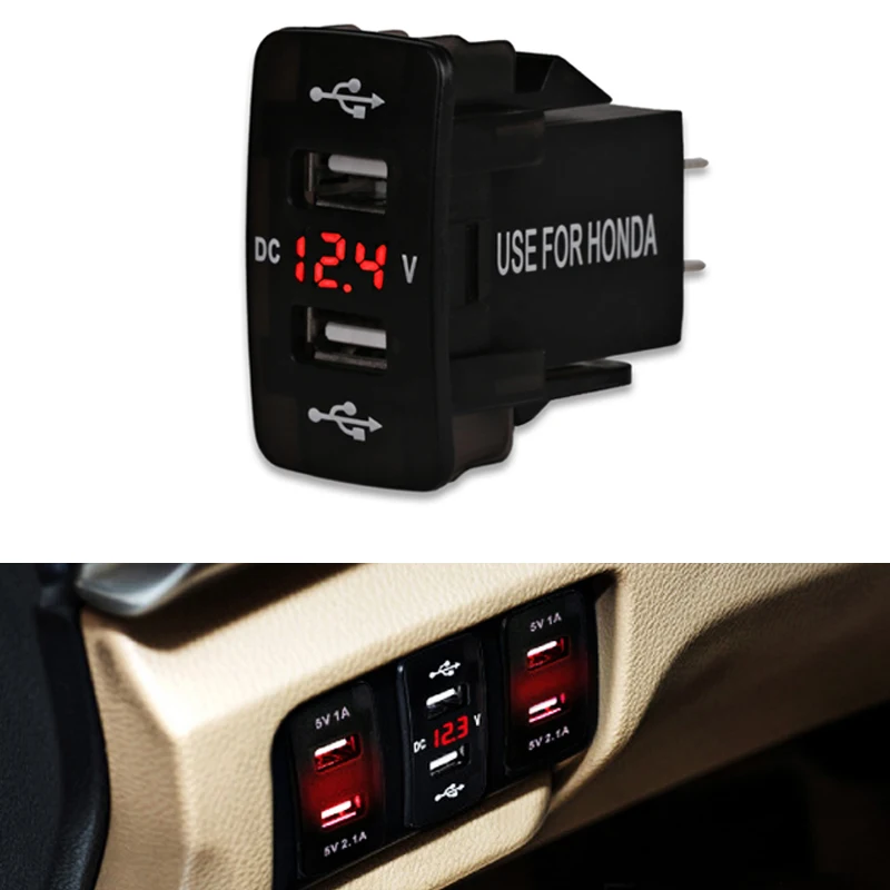 Автомобильное USB-зарядное устройство с двумя USB-портами для прикуривателя, 5 В, 2,1 А, 12 В, для Honda, для всех мобильный телефон