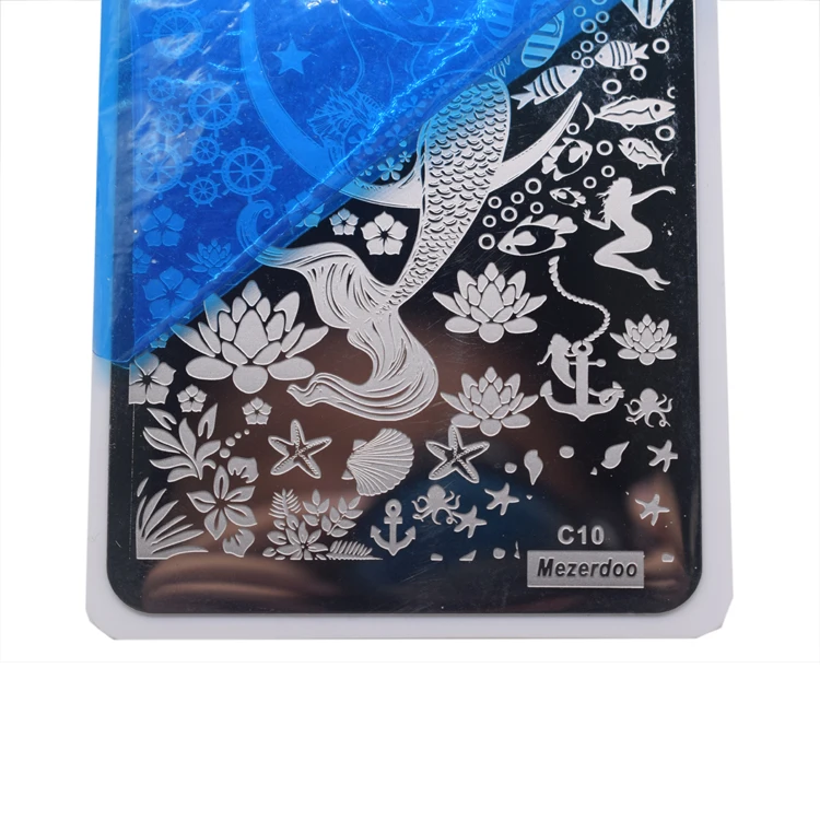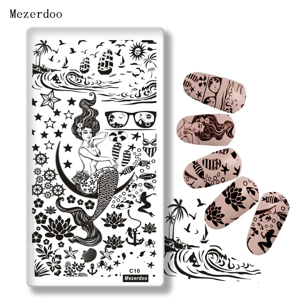 Mezerdoo тема океана дизайн ногтей штамп шаблон Русалка морская Морская звезда парусник изображение стемпинг ногтей покрытие пластины DIY инструмент для ногтей C10