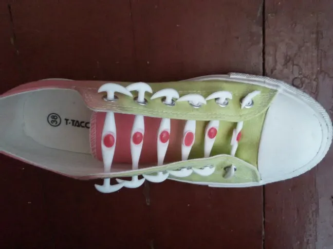 Заказала 3 цвета. Пользуюсь не первый раз. Это прикольная штука. Силиконовые шнурки не нужно завязывать, что удобно особенно детям. Именно эти они одноразовые, если поставить, то не достаёшь уже из-за утолщения в той части которую засовываешь внутрь. Меня устраивает. Стопа легко входит и в кросы, и в кеды. Они тянутся хорошо. Кто любит менять цвета есть другие модели. Первый раз купила случайно, у себя в городе увидела, но потом не нашла нигде.