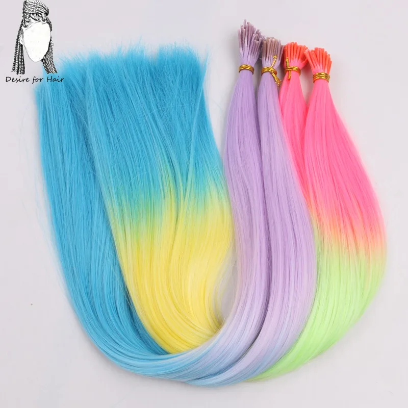 100 прядей 22 "длинные 1 г яркие цвета высокая температура синтетическая палочка i кончик петли микро кольцо для наращивания волос для вечеринки