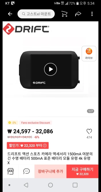 Аксессуары для спортивной камеры Drift Action, 1500mA, дополнительный срок службы батареи 500mA, стандартный модуль батареи для Ghost 4k Ghost X