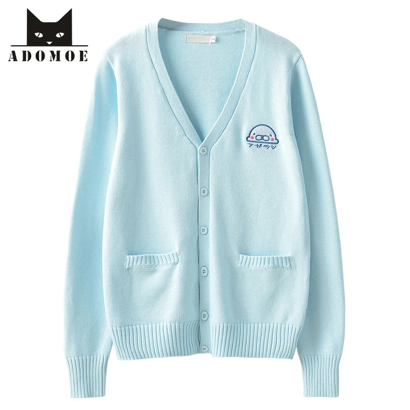 Осенний женский свитер в стиле преппи, небесно-голубой, трикотажный свитер, корейский милый свитер JK для девочек