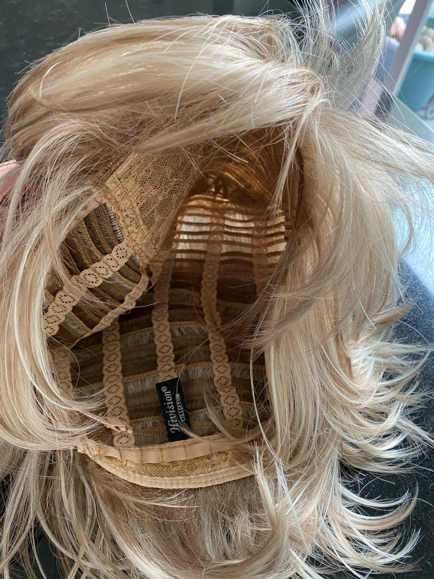 The wig is very pleasing to the eye, but it is not really possible to wear it because it does not hold my head at all. The rubber band system is not enough to hold the wig on his head. If I went outside, my wig would slip out of my head as I walked and the wind wouldn't even have to blow. And that's a shame, because I bought it so I could wear it outside. so I'm not very happy, because now I have to look for a system to keep it on my head so that it doesn't fall down on the street among people. Otherwise, the hair is very high quality and you can hardly tell that it is made of artificial fibers and the cut of the hairstyle is very nice. It is therefore a real pity that it cannot be used for its purpose. I hope to find some clips to attach my wig to my hair, so I don't have to be worry about the wig falling. And I'm really sorry. Otherwise, I would give him 5 stars, because the wig is nice, but I bought it to wear on my head and not look at it at home on a hanger.
