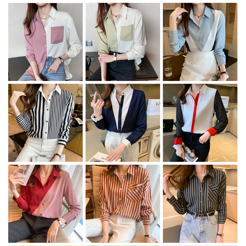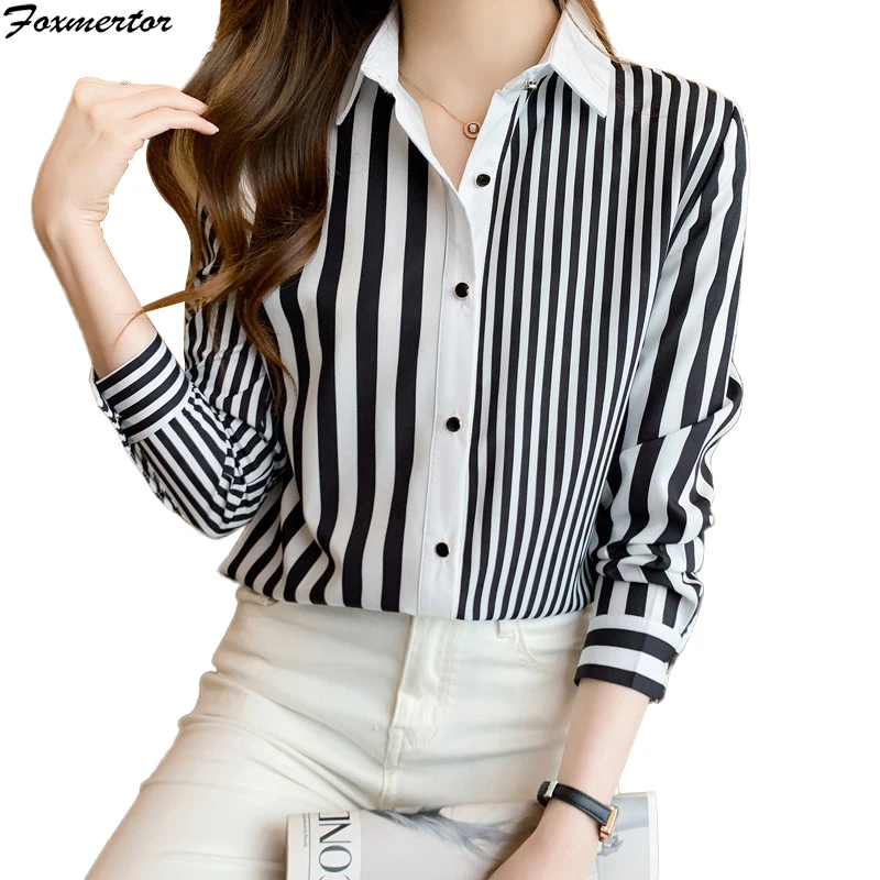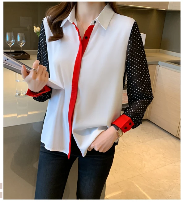Женская шифоновая блузка, рубашка 2021, женская одежда, блузки с длинным рукавом, шифоновые женские офисные блузки, женский топ в полоску в горошек