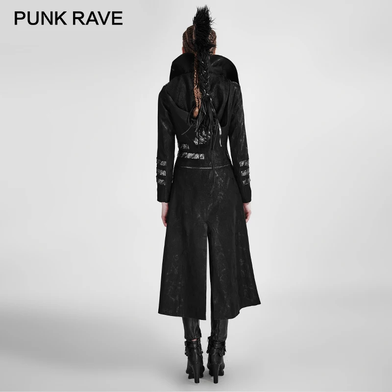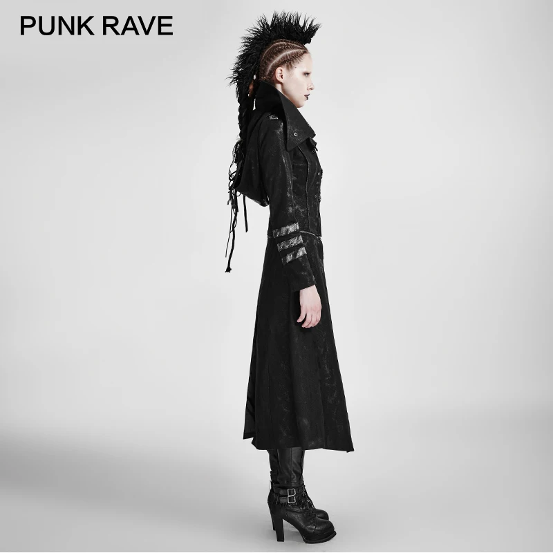 Женский плащ в стиле панк-рейва, готическое пальто, кожаная съемная шляпа скорпиона с высоким воротником, армейская ветровка, дождевик