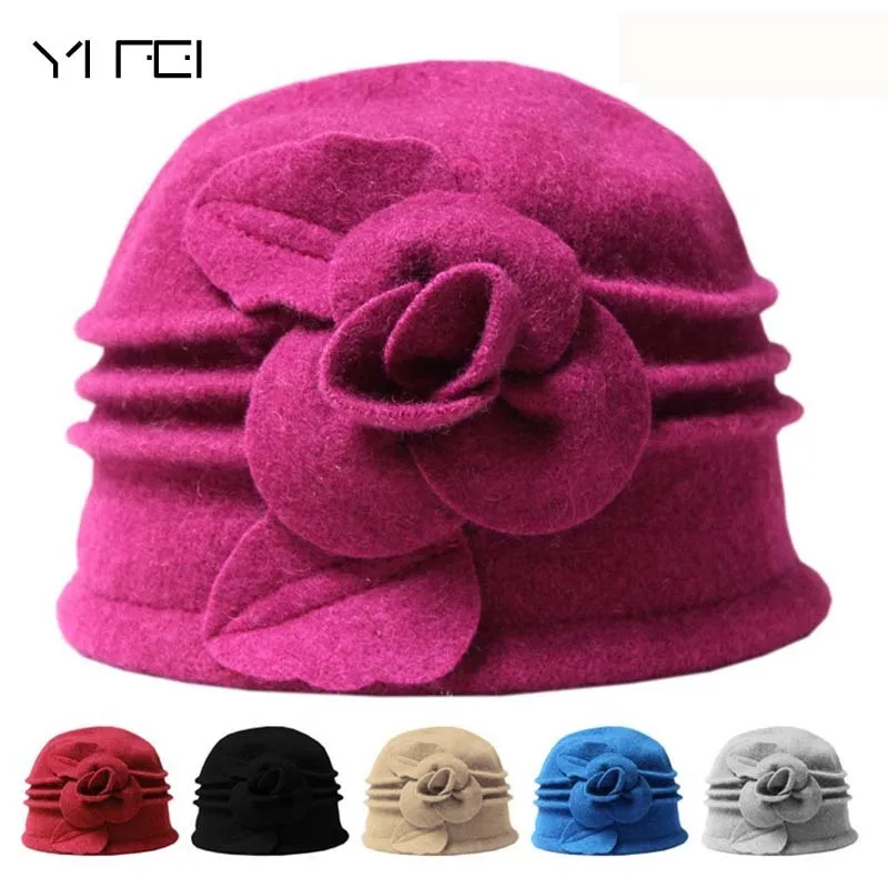 Женские теплые осенние шляпы, из 2021 чистой шерсти, с цветочным узором, 100%, мягкие, зимняя женская шапка