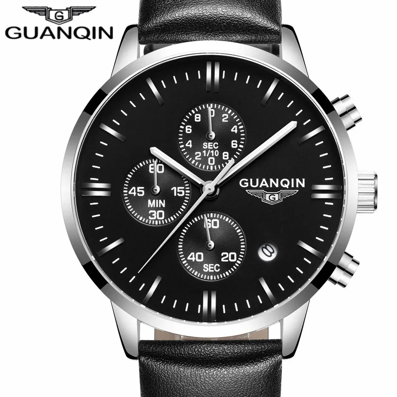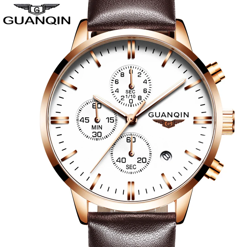 GUANQIN Кварцевые Часы Мужские Часы Лучший Бренд Класса Люкс Хронограф Часы Мужчины Спорт Водонепроницаемая Кожа Наручные Часы relogio masculino