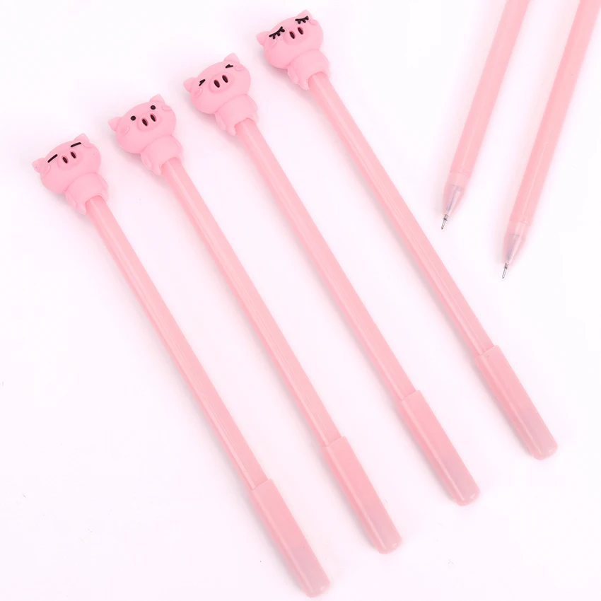 1 шт. милые черные гелевые ручки с случайными чернилами, розовые шариковые ручки с животными для свиньи, канцтовары, офисные и школьные принадлежности