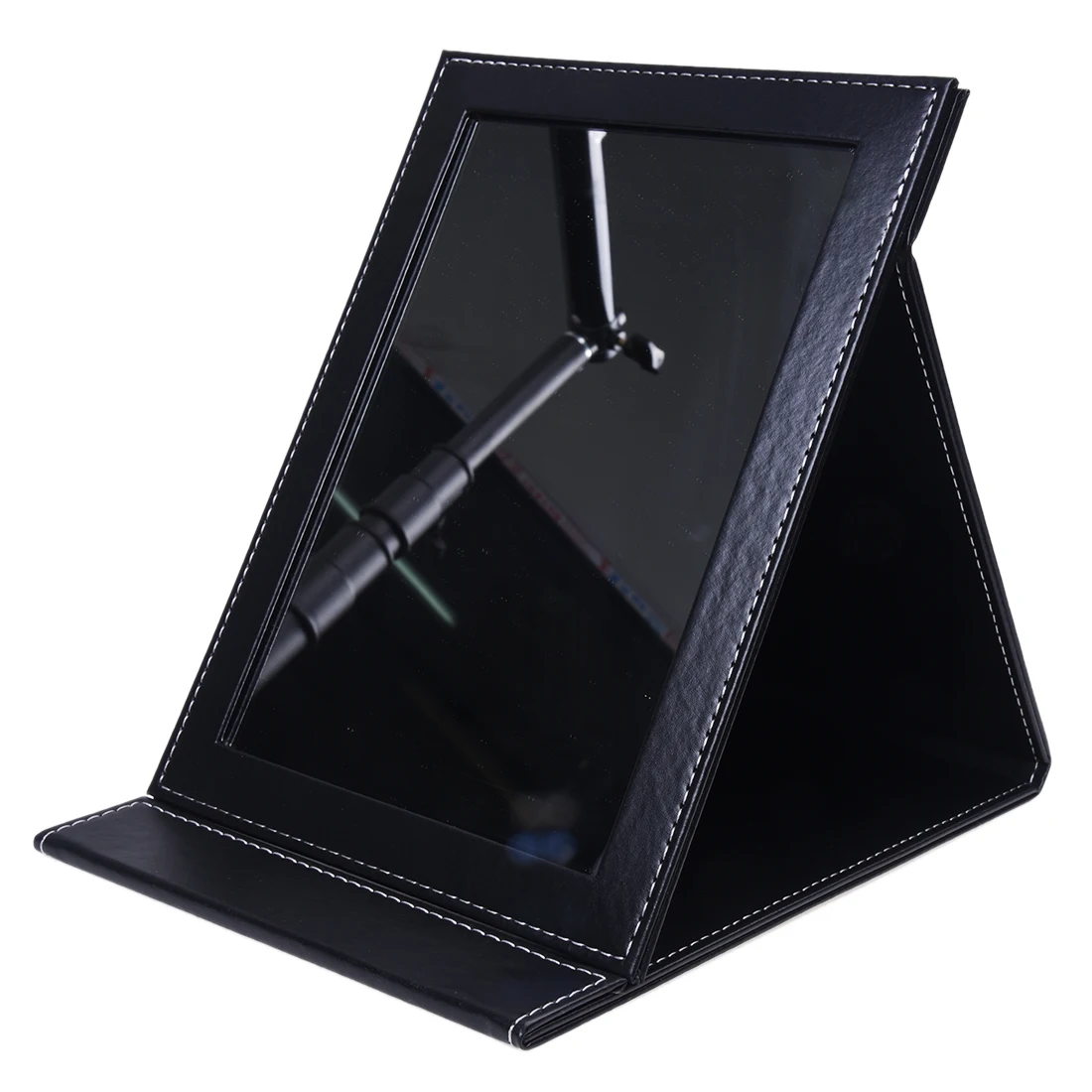 Компактное черное складное кожаное зеркало для макияжа 9,1x7,1 дюймов