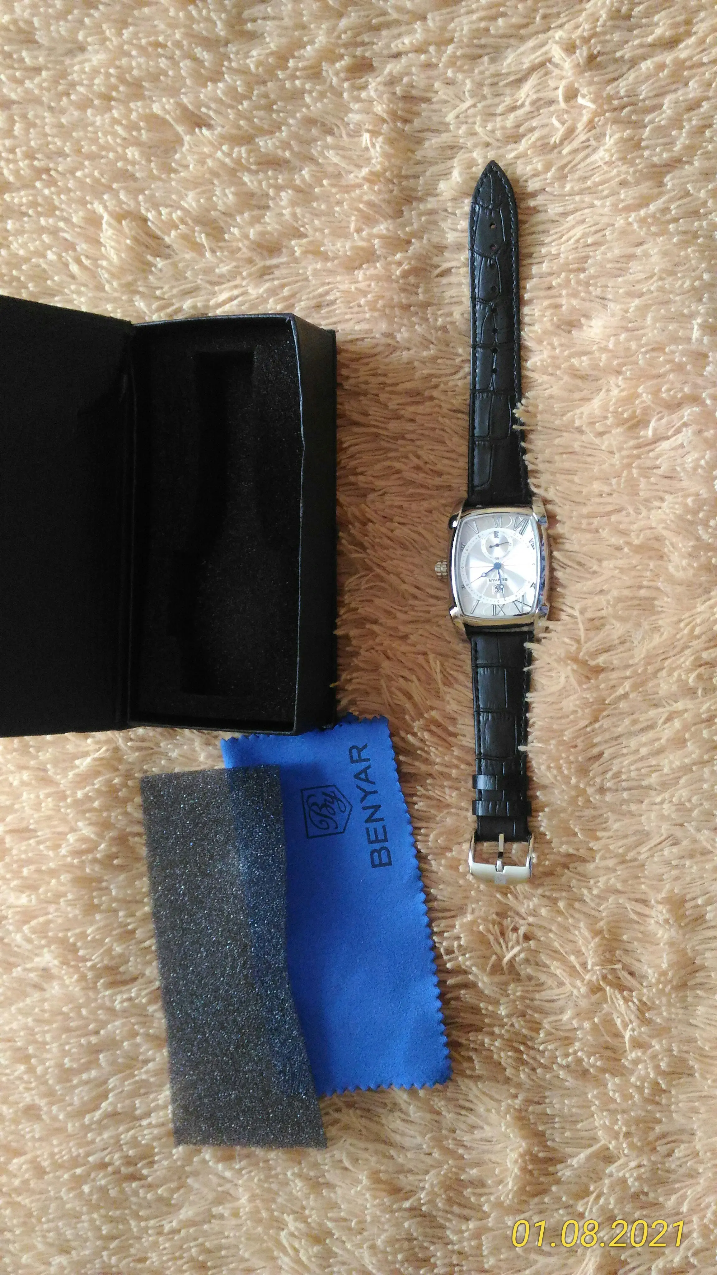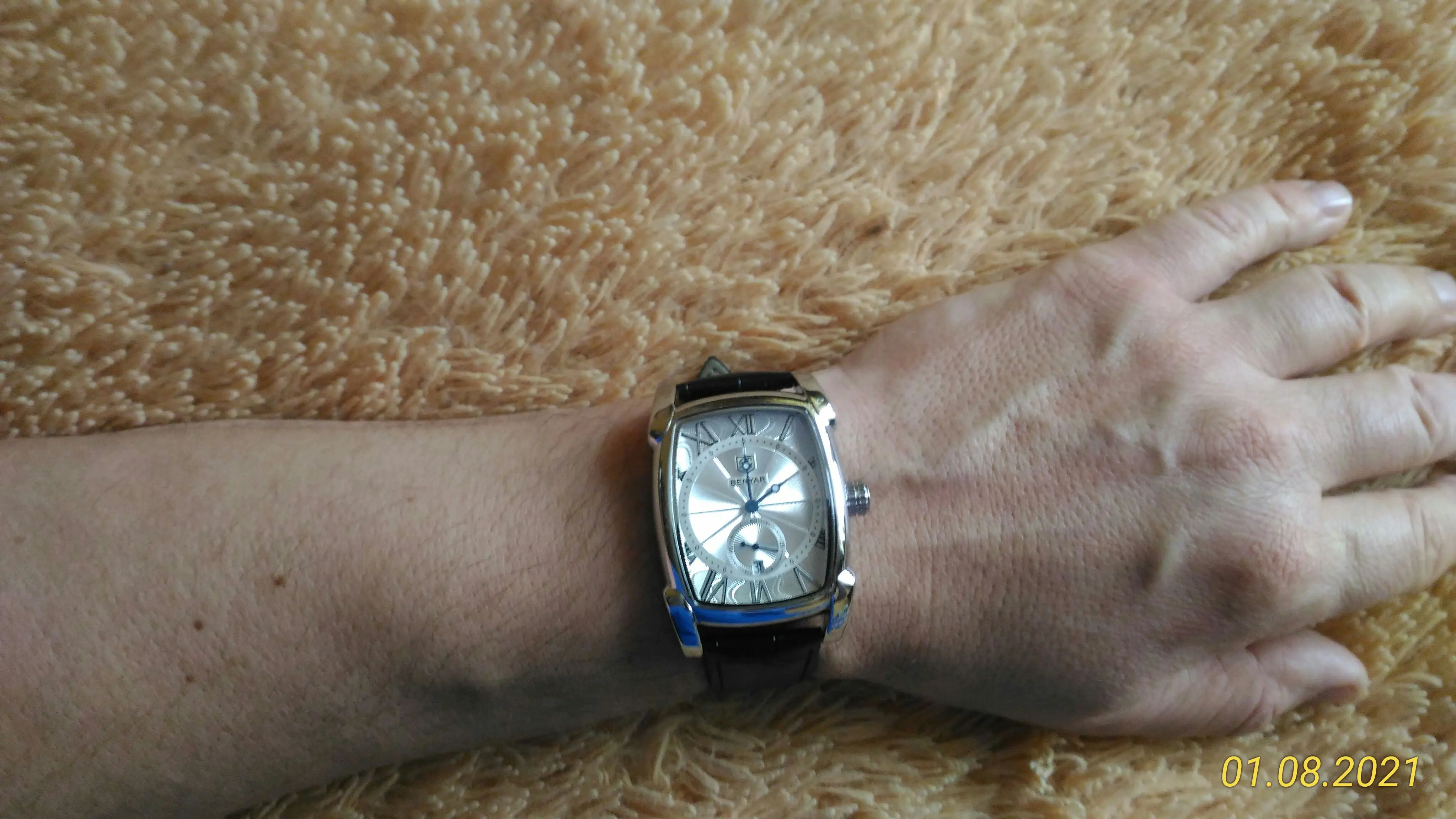 Заказ доставлен в течении 5 недель (попал на новогодние праздники). Упакован хорошо. При пересылке видимо уронили что-то сверху, коробочка помялась, но часы не пострадали. Часы смотрятся красиво и стильно. Секундная стрелка и дата на часах маленькие, но это не принципиально. Циферблат красиво переливается. Ремешок нормальный, на застежке гравировка логотипа. На руке смотрятся очень красиво Фото прилагаю. Часами доволен. Продавца рекомендую.