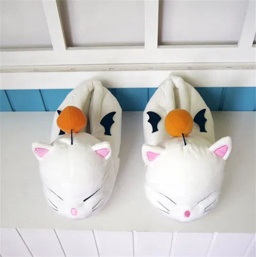 Final Fantasy 14 MOOGLE; Обувь для косплея; Милые пушистые Тапочки