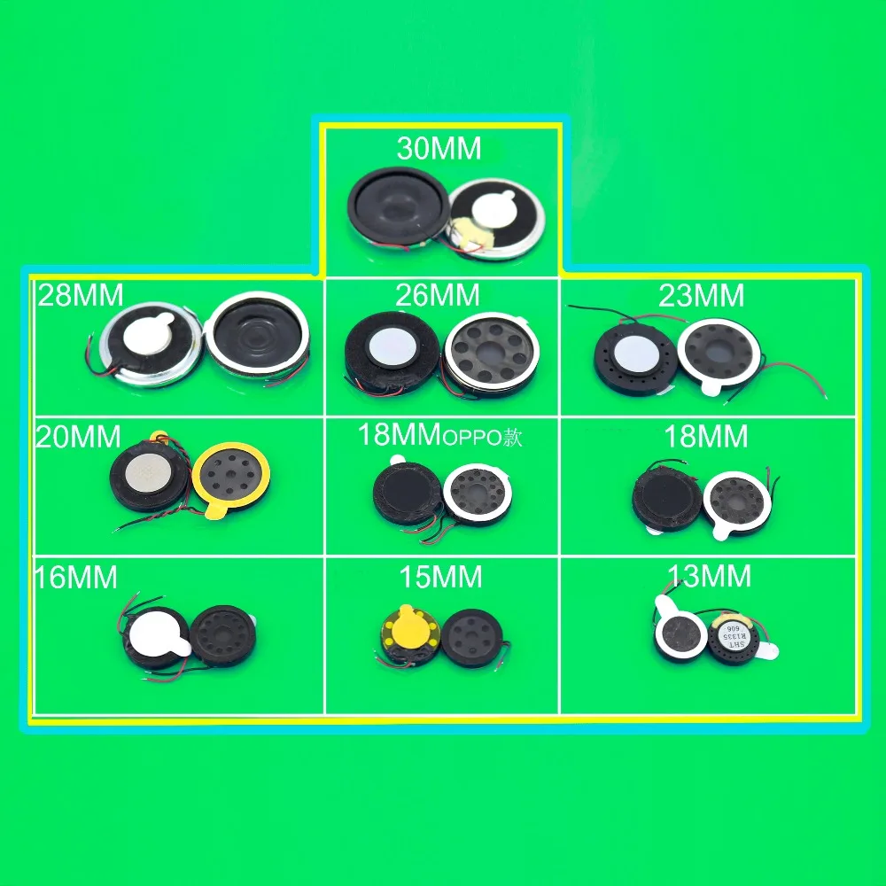 13 мм, 15, 16, 18 мм, 20, 23, 26, 28 мм, 30 мм, Круглый громкий динамик, звуковой сигнал, динамик с гибким кабелем, ремонтная часть для телефона и т. д.
