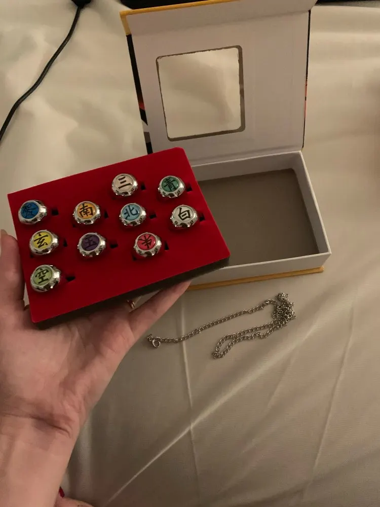 1)продукт:Серебрянный комплект кольц "Акацуки" из аниме "Наруто" 2)Доставка:я выбрал доставку "China Post Registered Air Mail",шла наземкой,пришла в *Казахстан,Нур-Султан* с 12 октября-16 ноября тоесть 36 дней,если не считать время оформления то 33 дня.Для меня 36 дня это очень хорошо 3)Цена:покупал за 718,58₽=3 995,3048тг считаю что это отличная цена,если покупать отдельно получится больше. 4)Вид:пришла посылка в отличном состоянии,коробка не пострадала при перевозки,сами кольца выглядят очень отлично никаких царапинов,цвета все на месте и не потерты.Размер регулировать сложно но можно,на пальцах выглядит красиво.эти кольца из нержавеющей стали,но это не точно,но я мыл с ними руки. 5)Недочеты:лично для меня никаких недочетов нет. 6)Продавец:с ним я не общался и не было никаких проблем Итог:если вы хотите купить комплект кольц Акацуки то покупайте только у него,меня все удовлетворило