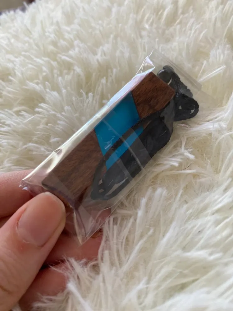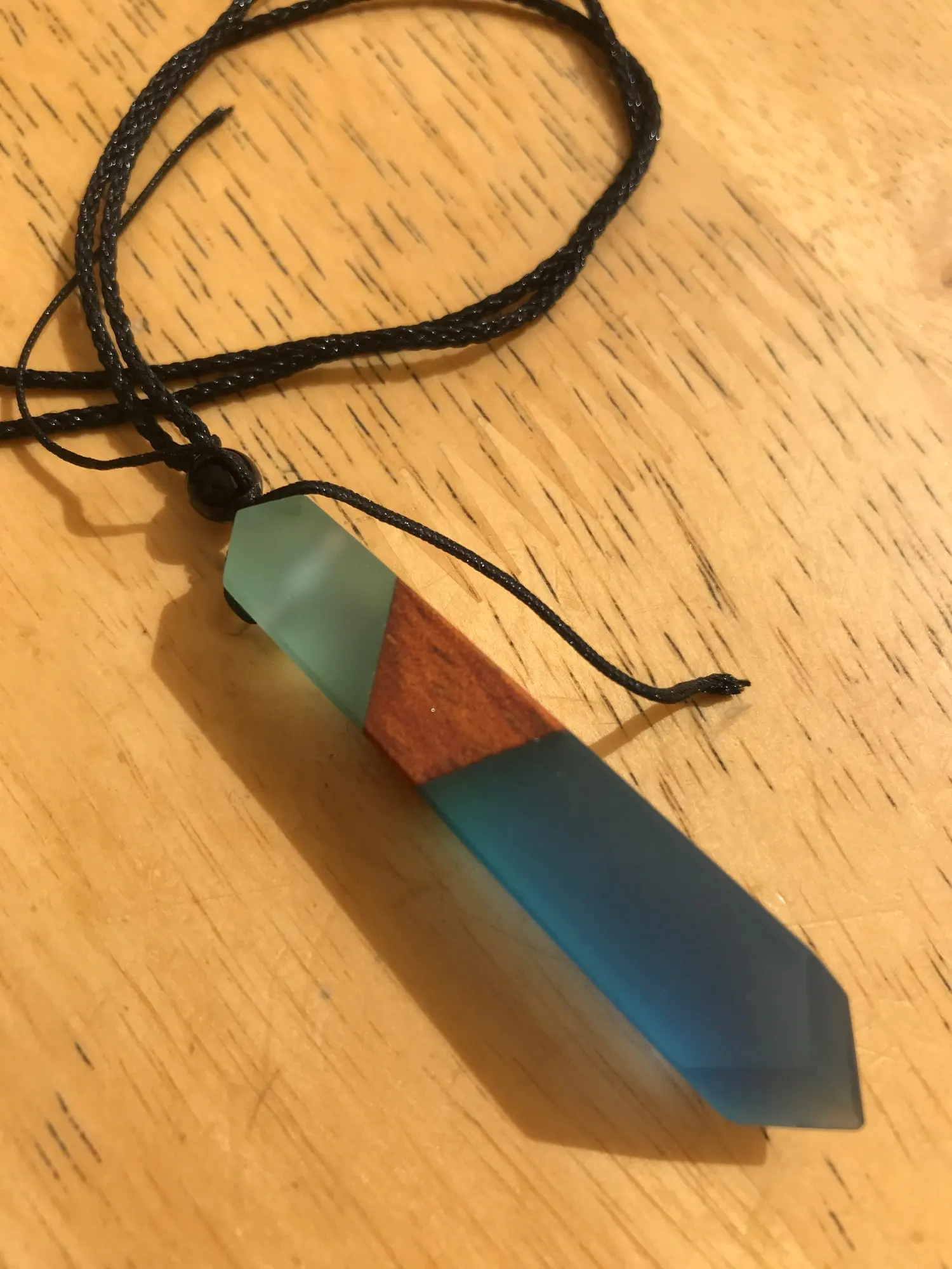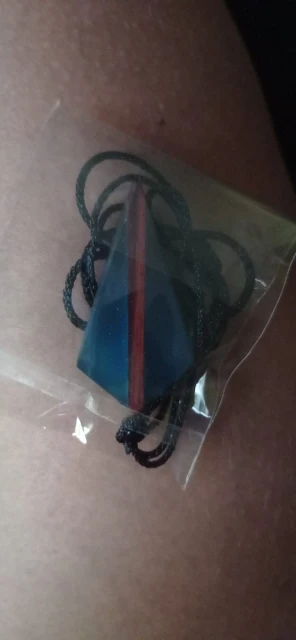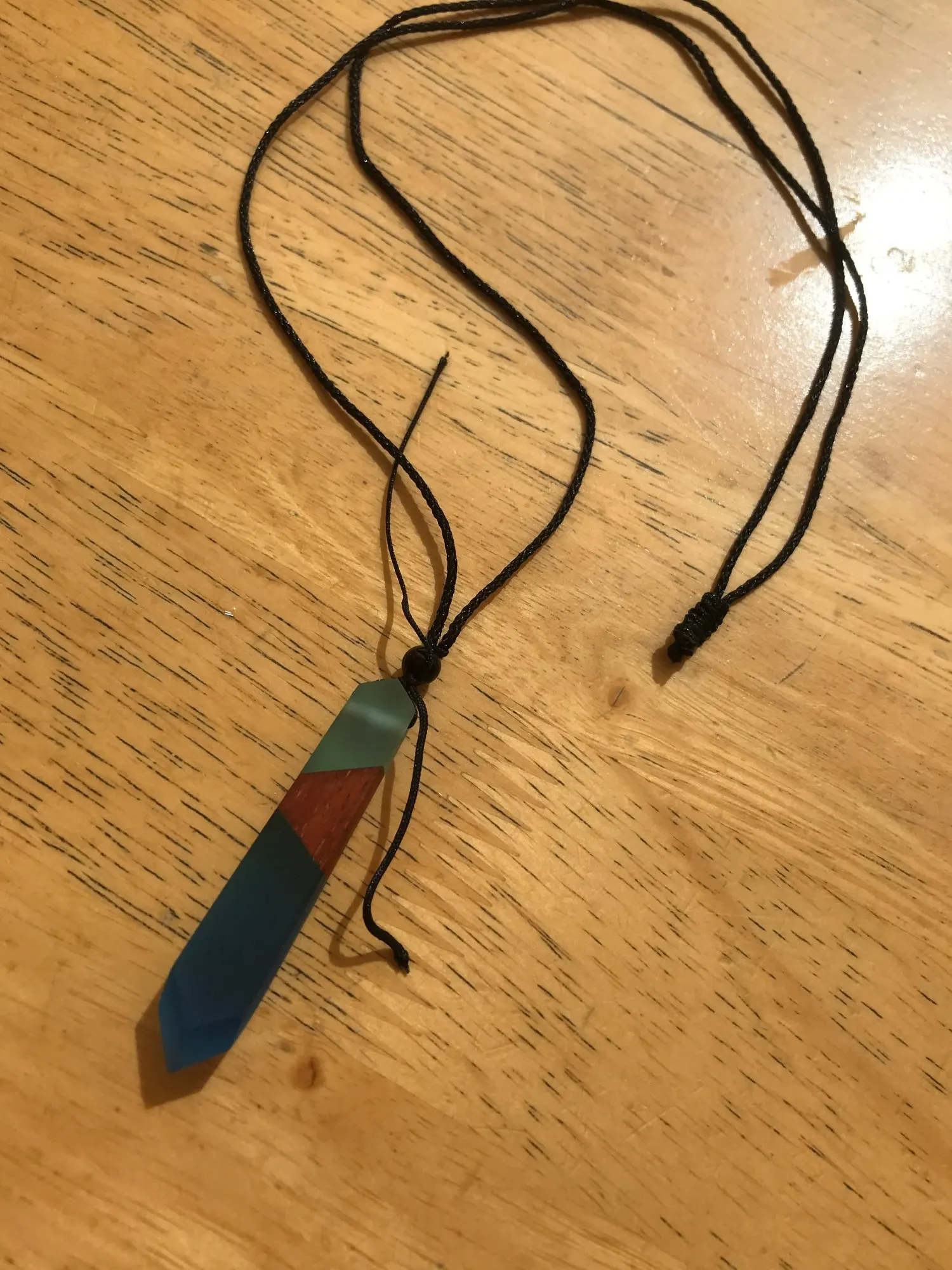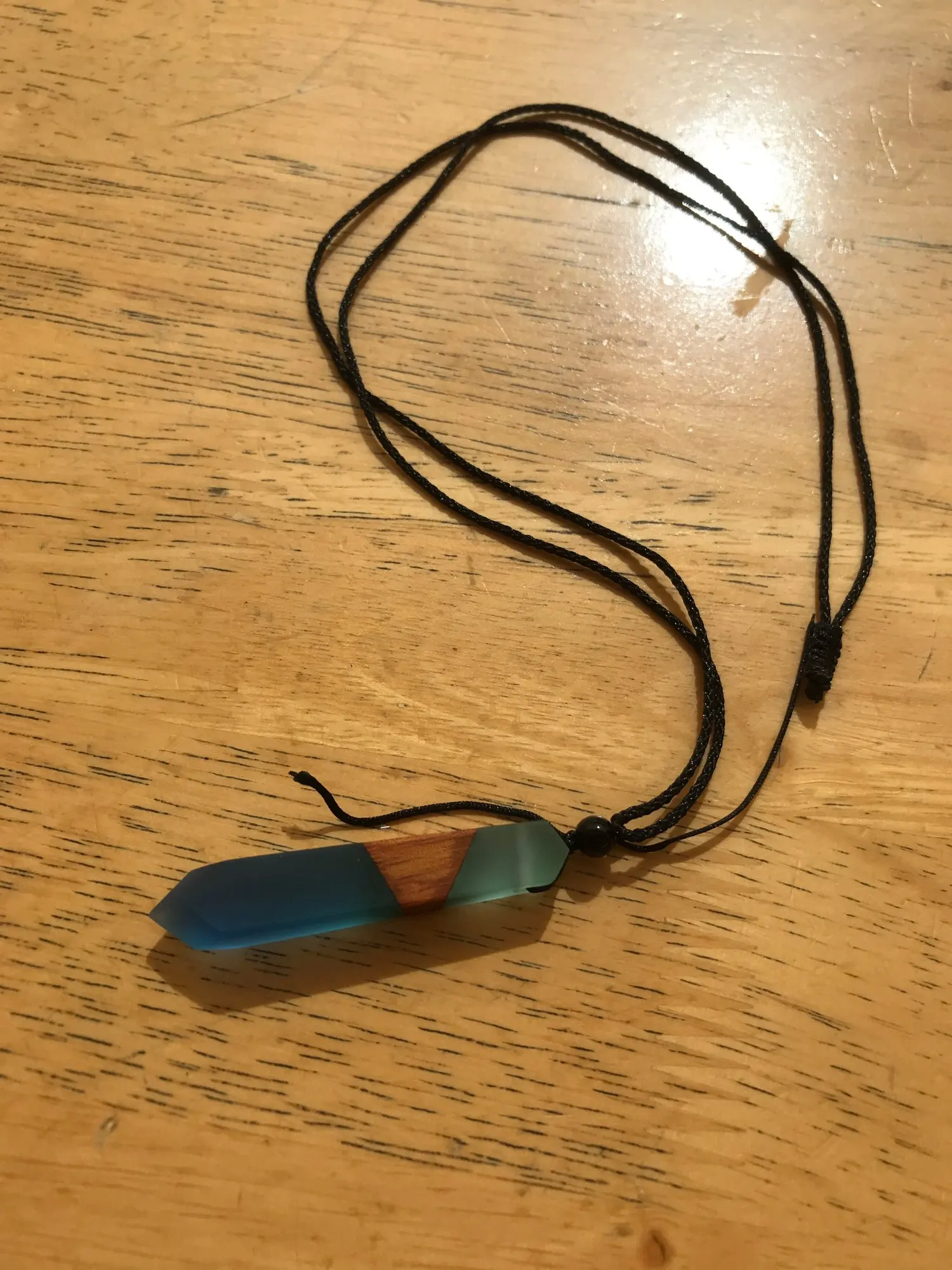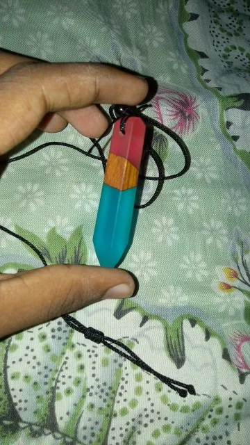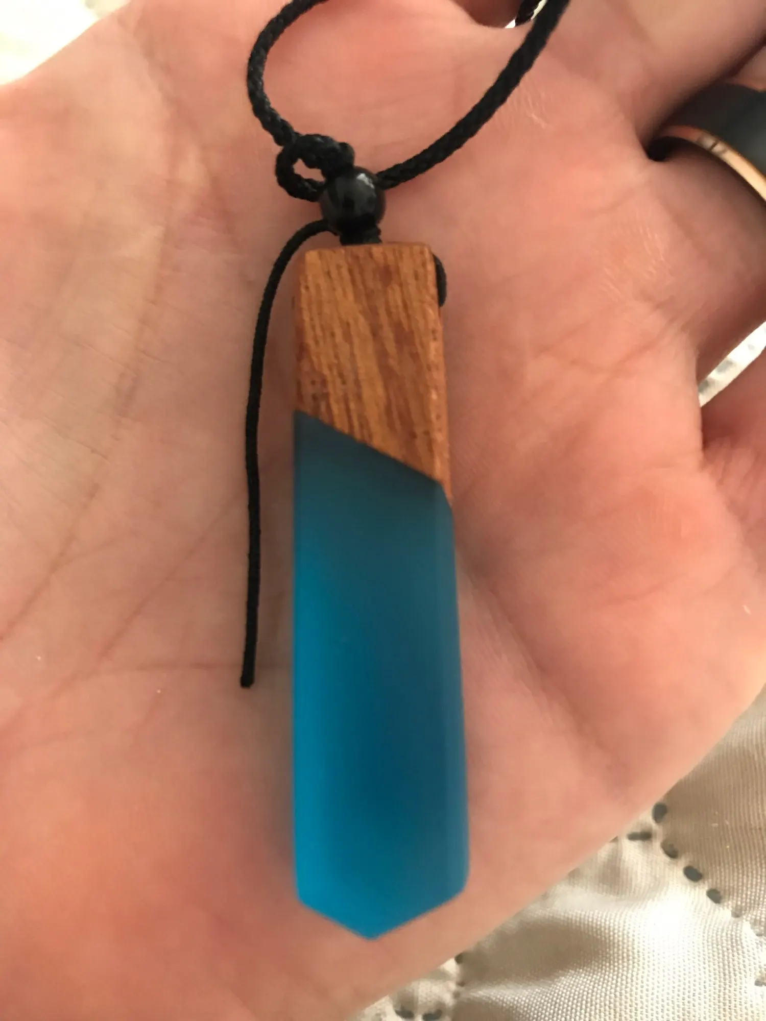 Больше, чем я ожидала, материал из древесной смолы выглядит очень высокого качества, он только улучшит ожерелье одним из других материалов, таких как кожа, вместо того, что он приносит, но очень хорошо