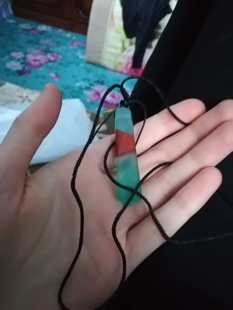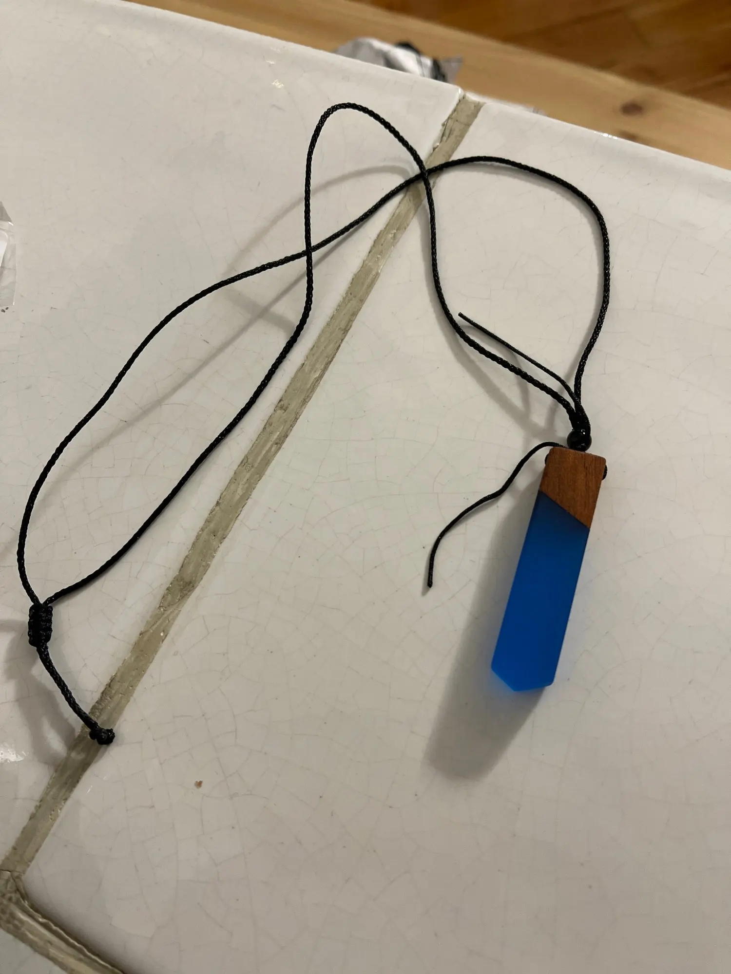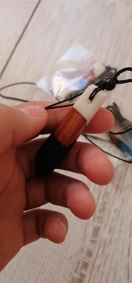 супер! верёвочка длинная, крепкая, узлы крепкие, сама заливка матовая, шлифованная, дерево настоящее, пахнет, сделано красиво и аккуратно