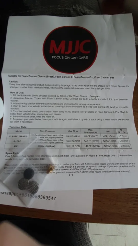 Доставка была очень быстрой для sg. У меня нет ничего, кроме хороших вещей, чтобы сказать об этой компании (MJJC). Во-первых, 1-упаковка отличная, 2-продукт отличного качества сборки, 3-обслуживание, которое я получил от персонала/компании, было выше ожиданий. Я благодарил их за подтверждение моего заказа и сказал, что я не могу дождаться, когда попробую их поролоновую пушку с моим Karcher K2 Следуйте за мной без шнуровки, как я увидел много хороших отзывов о очень известных автомобильных деталях каналов на YouTube, MJJC немедленно связался со мной и беспокоился, они были как "Привет, господин, Вы используете K2 follow me? О нет, это может не иметь достаточно давления, чтобы производить хорошую плотную пену, вы хотите отменить ваш заказ? "я был как oh Nooo! Персонал MJJC рекомендовал мне подождать, пока они покажут мне качество пены, исходящее из pro cannon с K2, следуя за мной, а затем принять мое решение, и они сделали это. Это дуло меня. Превосходное обслуживание. Они предлагают использовать наименьшее отверстие и получить меньшее отверстие 1 мм.