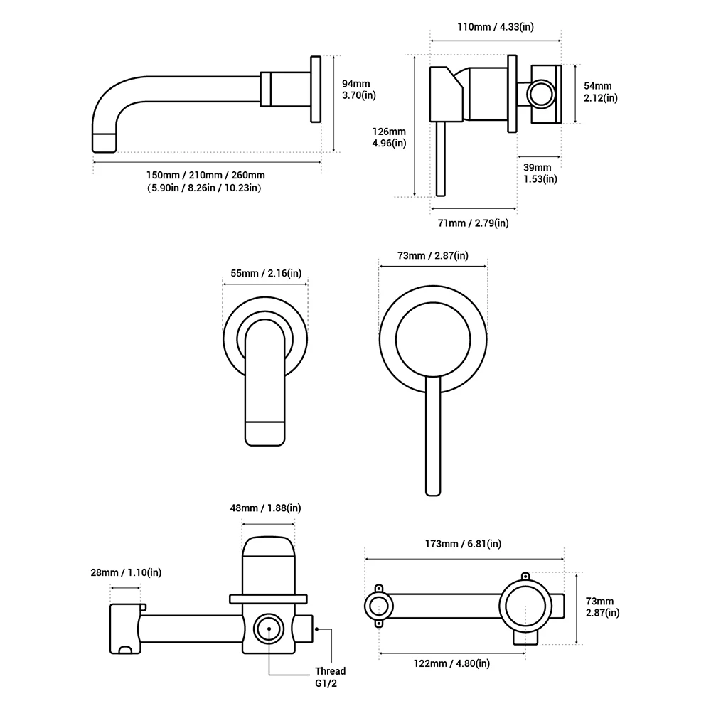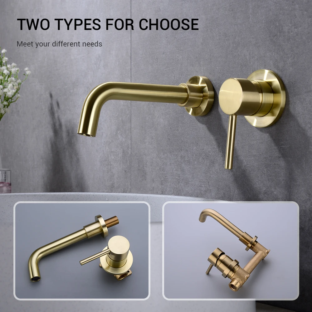 Твердый латунный матовый золотой настенный смеситель для раковины для ванной комнаты смеситель для умывальника Смесители для горячей и холодной ванны черная однорычажная ручка
