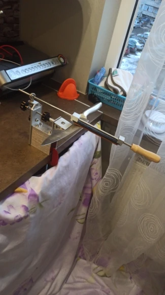 Посылка включает в себя:1 x Рамка для заточки с фиксированным углом3 шариковых камня (120 #, 600 #, 1500 #)