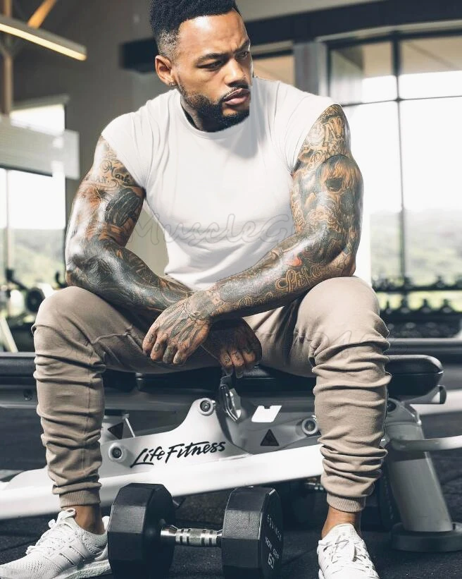 Мужская футболка для фитнеса, из хлопка, с коротким рукавом