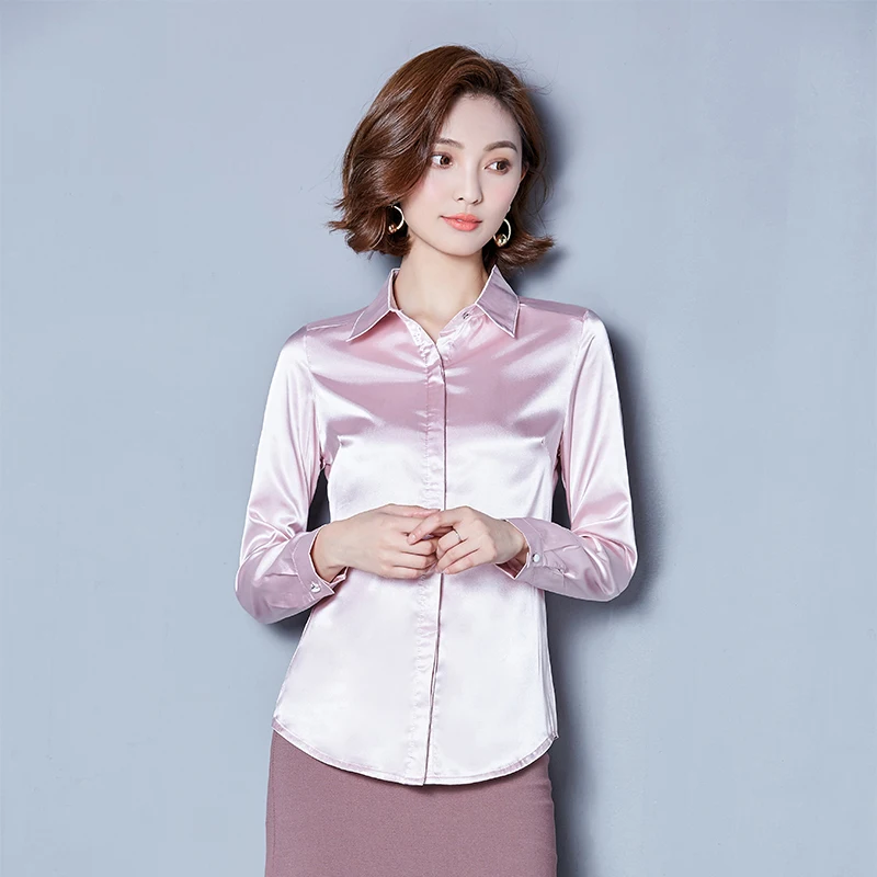2020 осенние Глянцевые Женские Атласные Рубашки с длинным рукавом, блестящие атласные блузки, Женская рабочая одежда, офисные рубашки, Формальные атласные топы