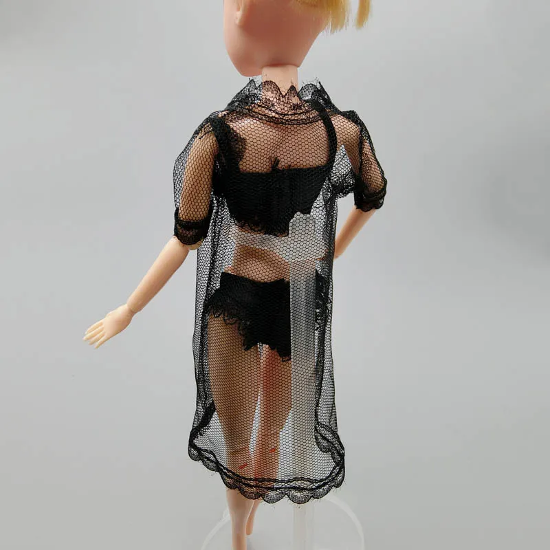 4 компл.лот, аксессуары для кукол, сексуальное женское белье, пижама, ночное белье, кружевное длинное пальто, Ночная одежда + бюстгальтер + нижнее белье, Одежда для кукол Барби