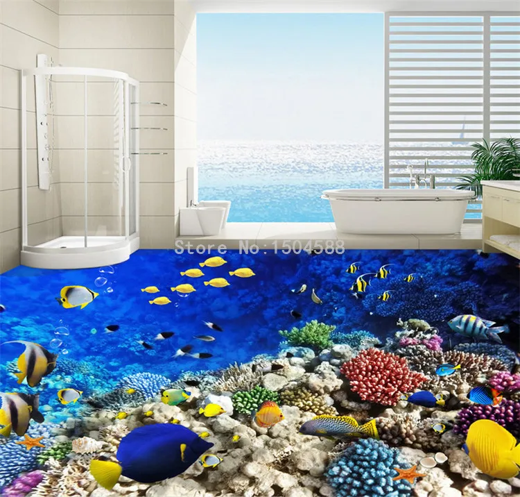 Фото обои для пола стены на заказ 3D тропическая рыба Настенная Наклейка ванная комната дети спальня ПВХ носить Нескользящая Водонепроницаемая настенная бумага