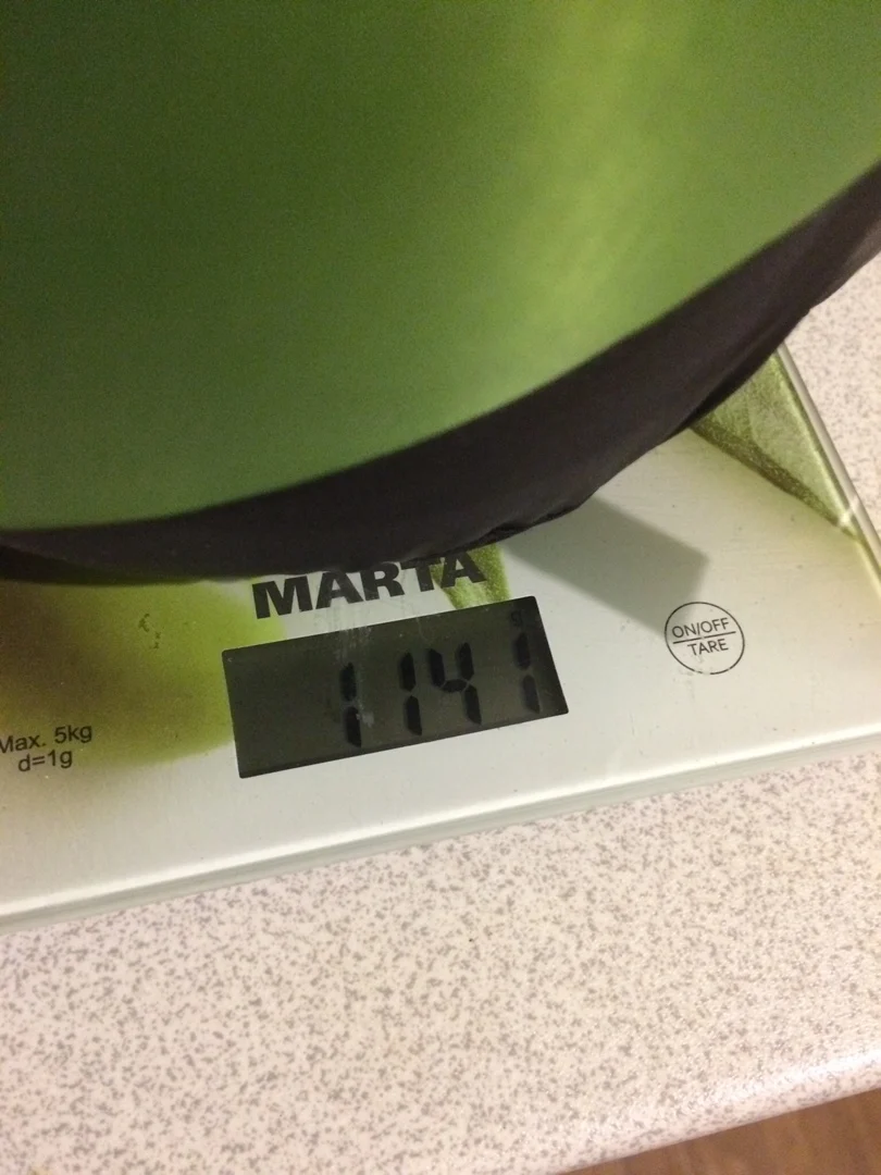 Больше месяца продлевал время отправки. Продавец говорил что ждет поставку от фабрики. Зато после отправки пришло быстро. Вес спальника указан без компрес мешка. Мой g1 m весит 730гр без мешка, 770гр с мешком. На рост 174 нормально, но свободного места в голове и ногах минимум.