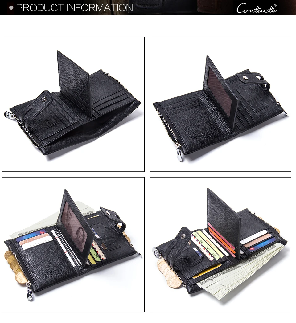 CONTACT'S Новое поступление 2019 года кошелек органайзер из натуральной кожи с застежками молния, с отделениями для хранения денег и монет