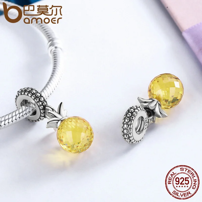 Браслет BAMOER из стерлингового серебра 925 пробы с подвеской из кристаллов циркония и желтым цирконием, Подарочный браслет SCC150 для самостоятельного изготовления ювелирных изделий