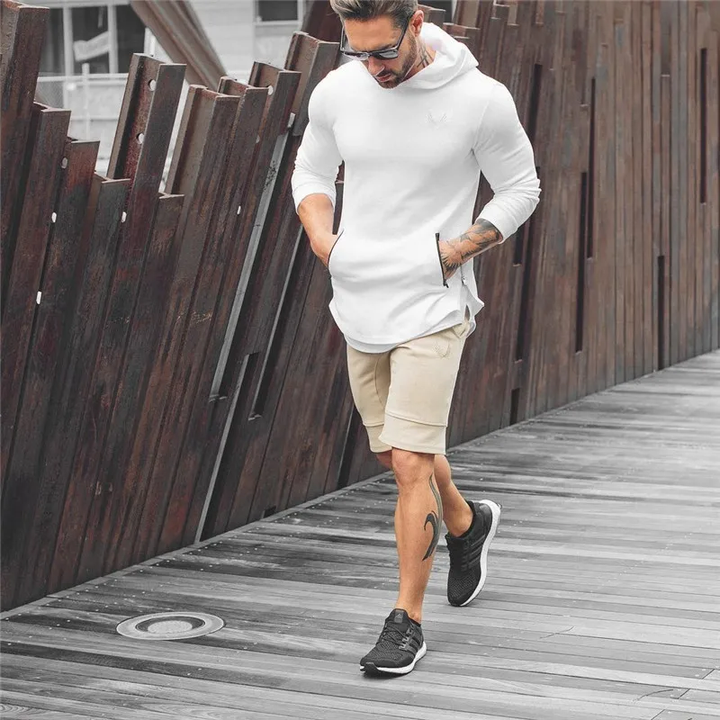 Мужские толстовки с карманами и вышивкой, с боковой молнией, для спортзала, бодибилдинга, хлопковые толстовки, пуловер с капюшоном, 5 цветов