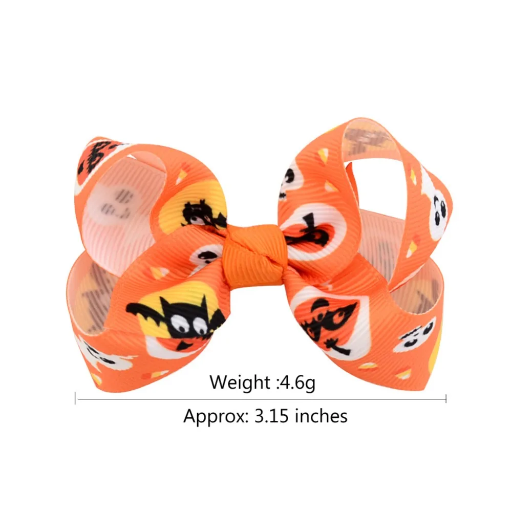 Название продукта:3,15 дюймов Хэллоуин Grosgrain ленты банты с зажимом 12 шт./лот призрак тыква Pinwheel заколки для волос шпильки аксессуары 751