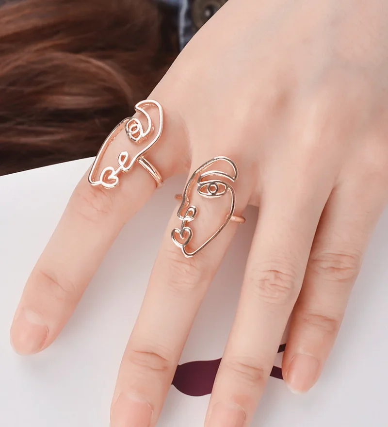 Новые этнические металлические полые кольца с человеческим лицом для женщин, 2 шт.компл., модные кольца на костяшки пальцев из сплава, Подарочные ювелирные изделия XR925