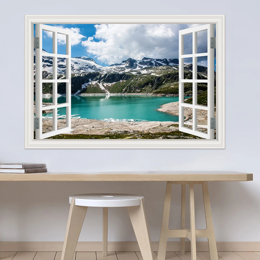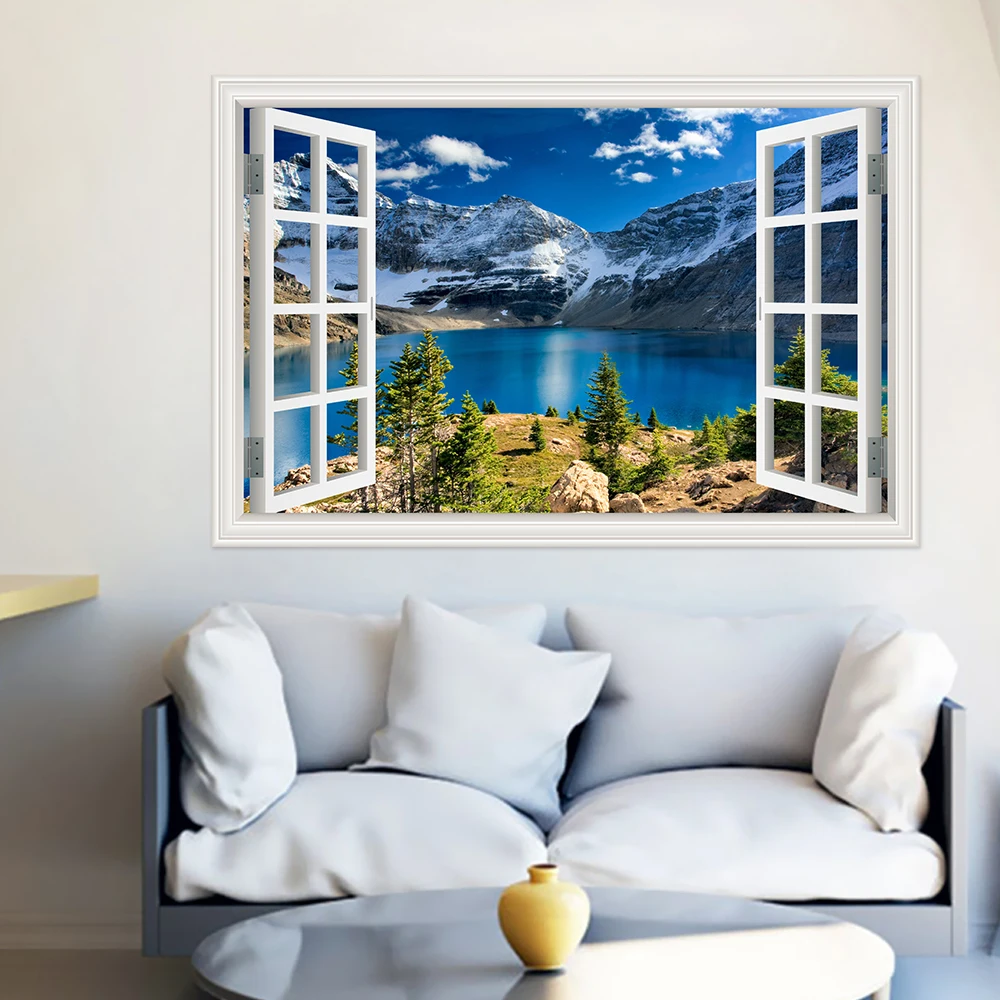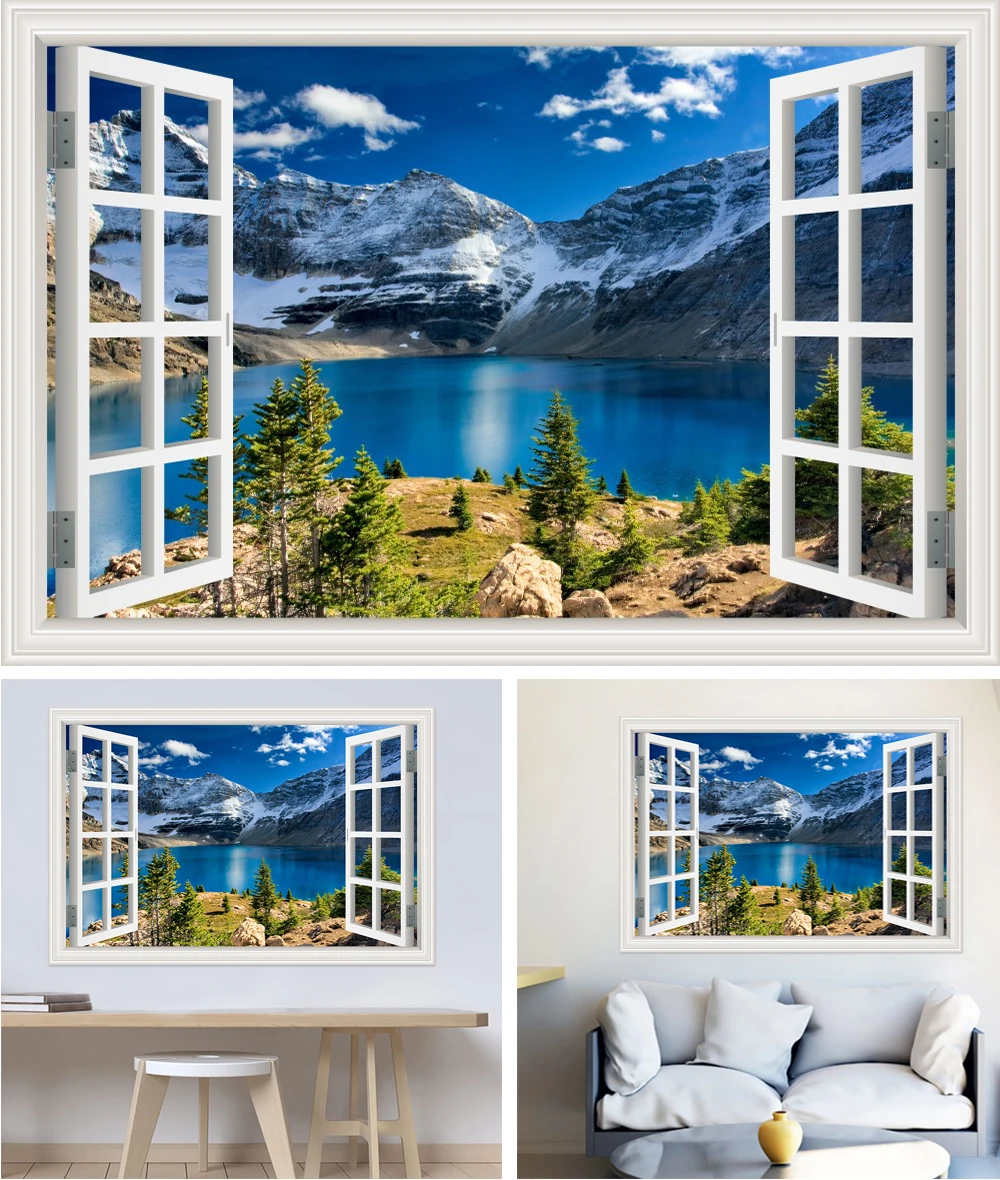 Настенные водонепроницаемые 3d-наклейки из ПВХ с изображением гор и озер, обои с пейзажем для гостиной, детской комнаты, кухни, большой постер