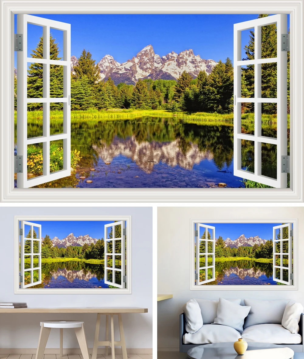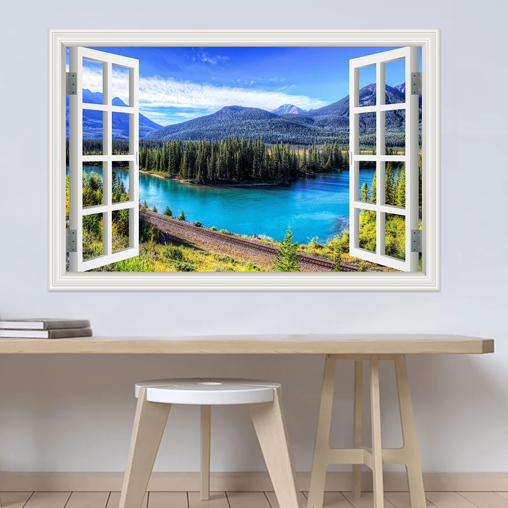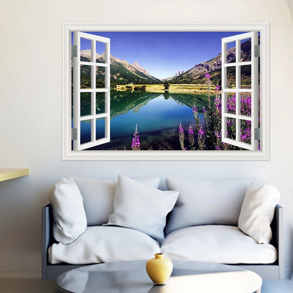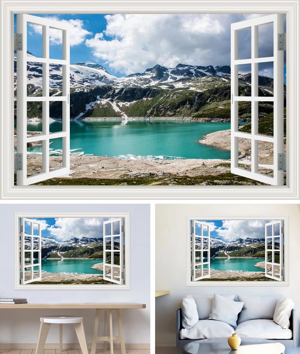 Настенные водонепроницаемые 3d-наклейки из ПВХ с изображением гор и озер, обои с пейзажем для гостиной, детской комнаты, кухни, большой постер